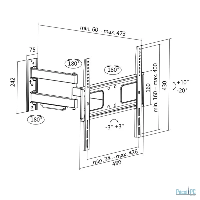 Kijelző, 32"-55", Fali