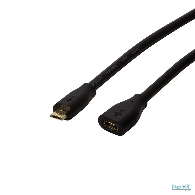USB kábel, microUSB, microUSB, USB2.0, Male/Female, 0,5m, Black, Töltő és adatkábel