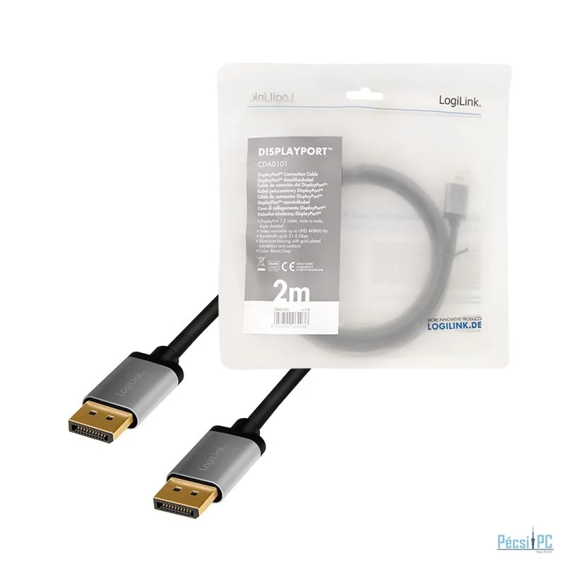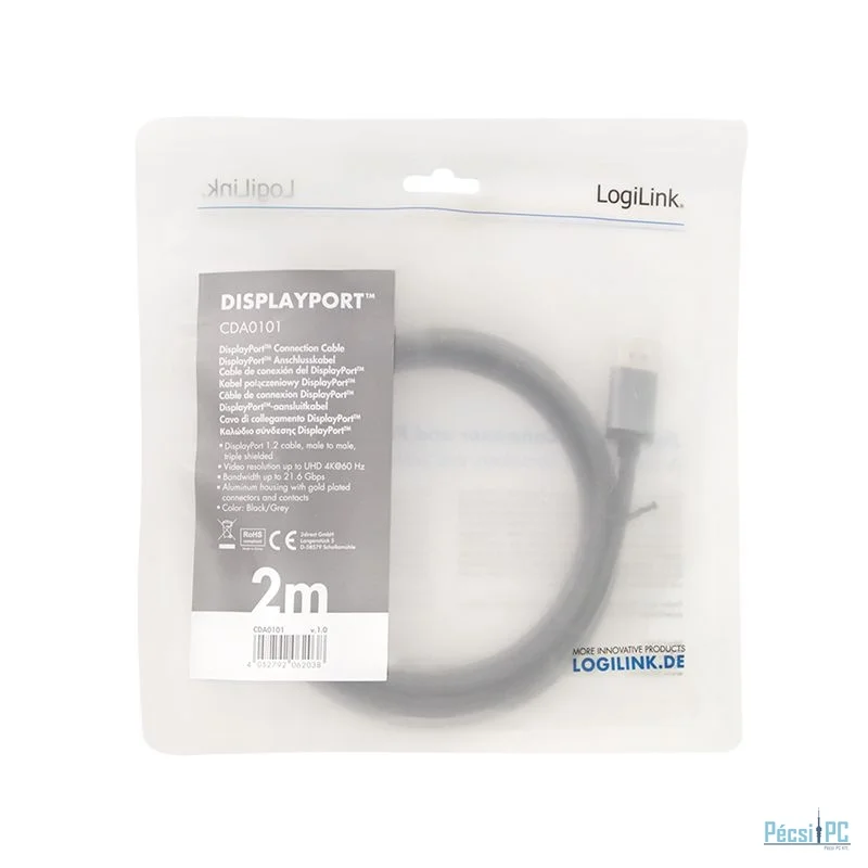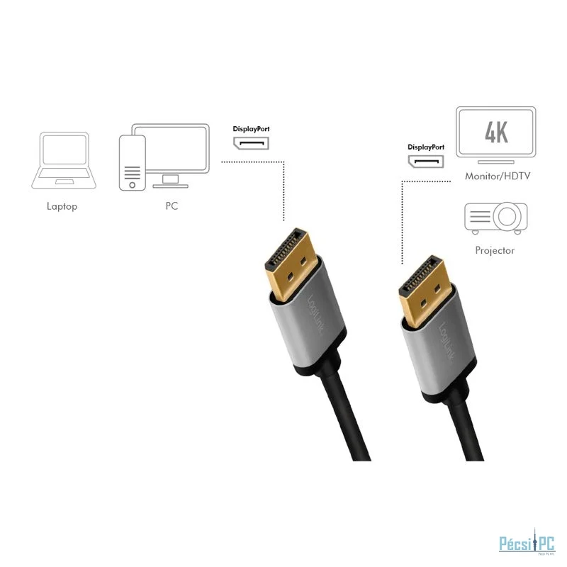 Logilink DisplayPort cable DP/M to DP/M 4K/60 Hz 2m Black/Grey