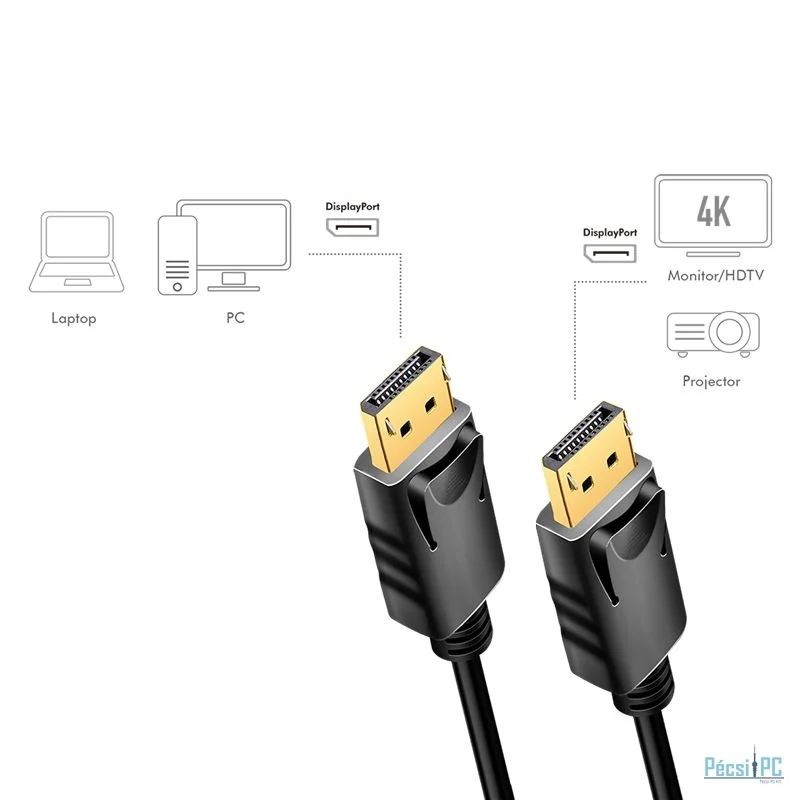 Videó kábel, DisplayPort, DisplayPort, Ultra HD 4K, Male/Male, 1m, Black
