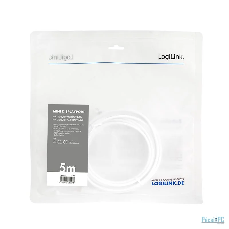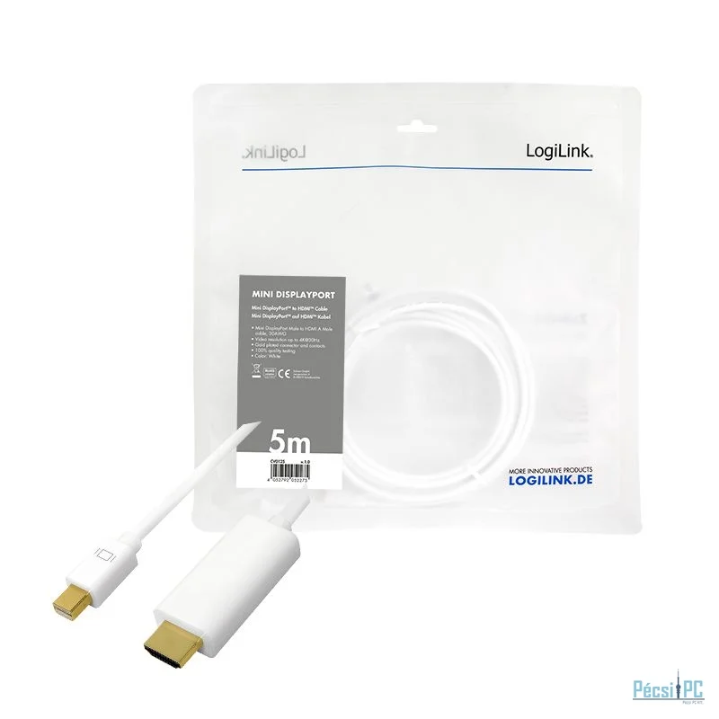 Logilink DisplayPort mDP/M to HDMI-A/M 4K/30 Hz cable 5m White