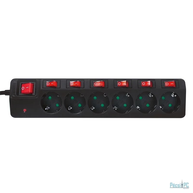 Logilink LPS233 Túlfeszültségvédő Kapcsolóval 6DIN 1,5m Black