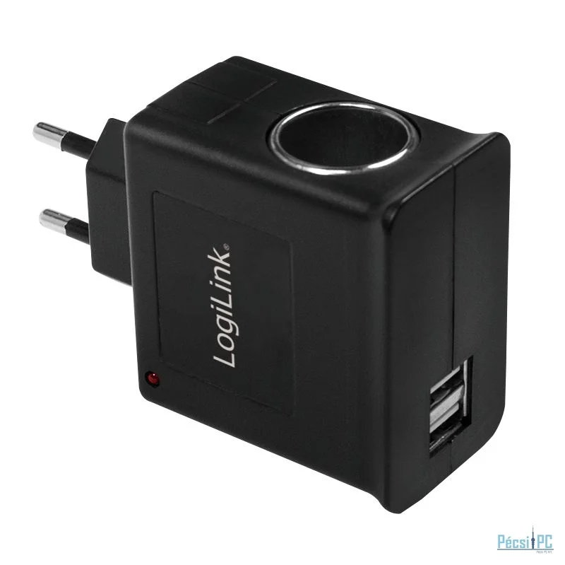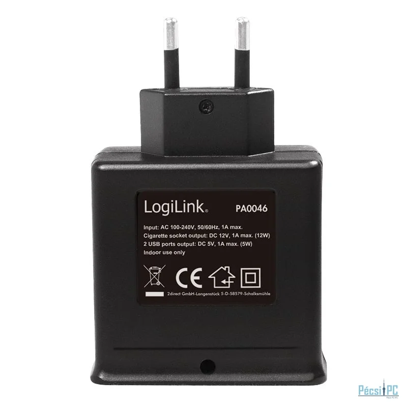 Logilink PA0046 Power Socket Adapter 2xUSB ports + 1x cigarette lighter socket 12W Black