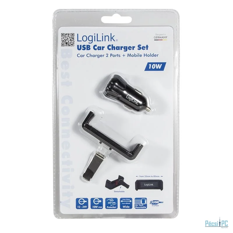 Logilink PA0133 USB car charger + mobile holder Black