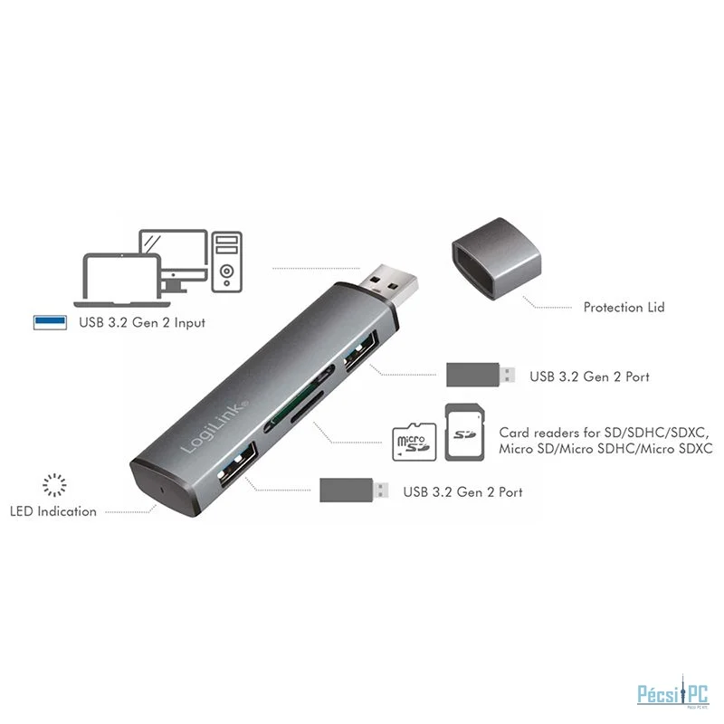 Logilink UA0394 USB 3.2 Gen2 2-port hub with card readers Aluminium