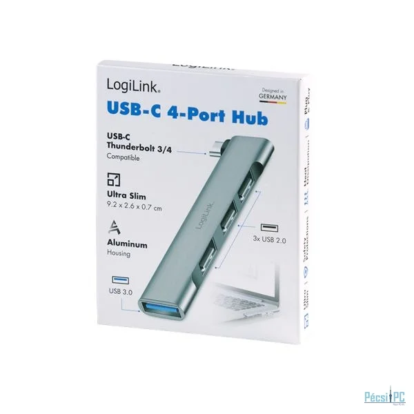Logilink UA0437 Ultraslim 4-Port USB-C-Hub Aluminium