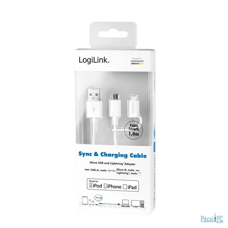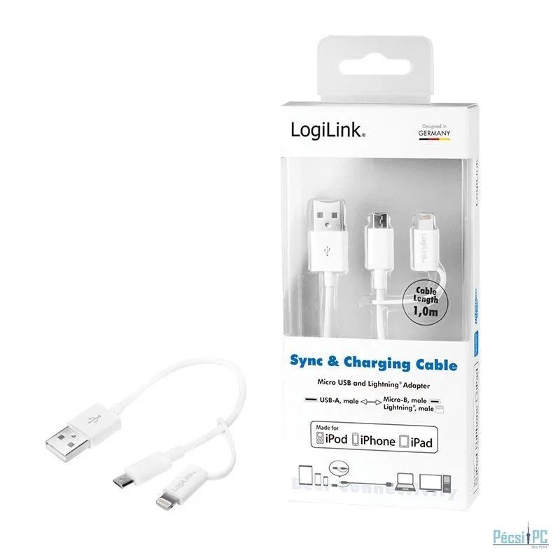 Logilink USB 2.0 cable USB-A/M to Micro-USB + Lightning/M 1m White
