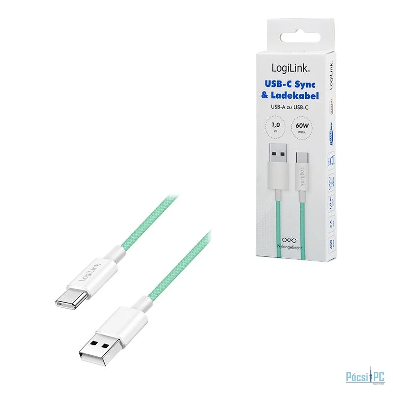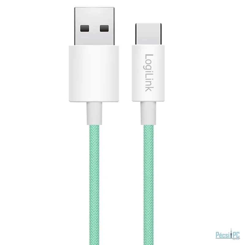 USB kábel, USB-A, USB-C, USB2.0, Male/Male, 1m, Green, Töltő és adatkábel, Szövetborítás