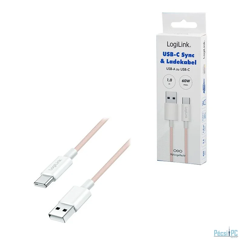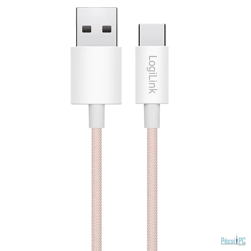 USB kábel, USB-A, USB-C, USB2.0, Male/Male, 1m, Pink, Töltő és adatkábel, Szövetborítás