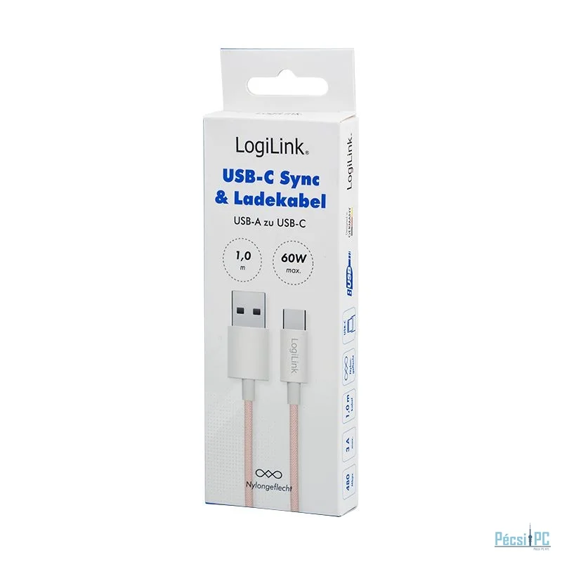 Logilink USB 2.0 Type-C C/M - A/M 60W cable 1m Pink