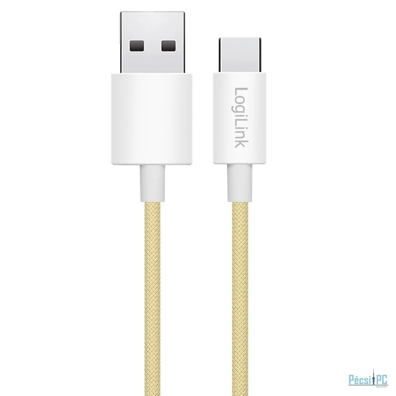 USB kábel, USB-A, USB-C, USB2.0, Male/Male, 1m, Yellow, Töltő és adatkábel, Szövetborítás