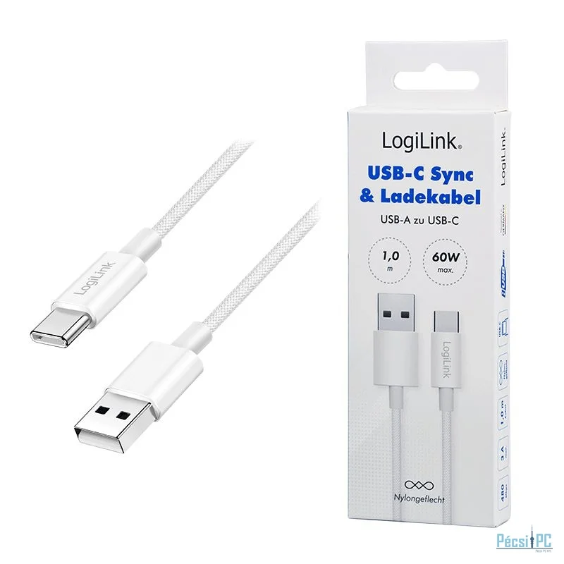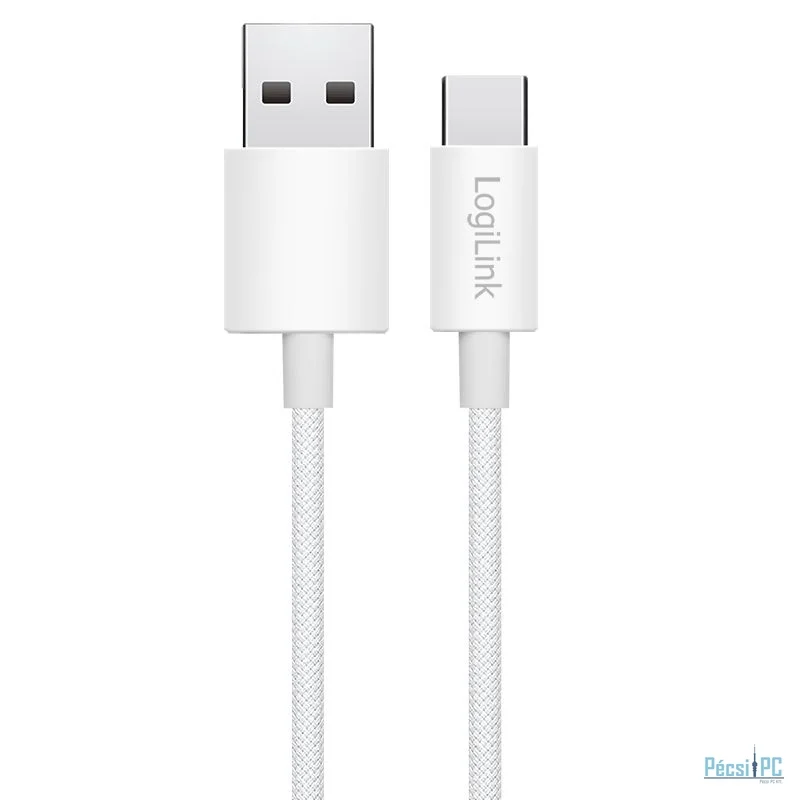 USB kábel, USB-A, USB-C, USB2.0, Male/Male, 1m, White, Töltő és adatkábel, Szövetborítás