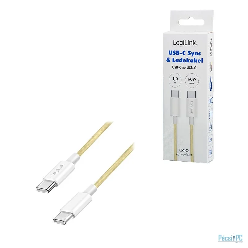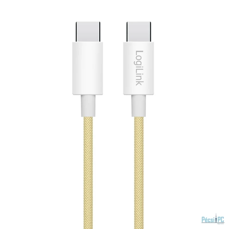 USB kábel, USB-C, USB-C, USB2.0, Male/Male, 1m, Yellow, Töltő és adatkábel, Szövetborítás