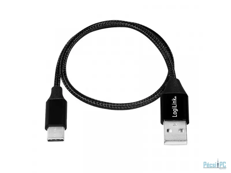 USB kábel, USB-A, USB-C, USB2.0, Male/Male, 1m, Black, Töltő és adatkábel, Szövetborítás