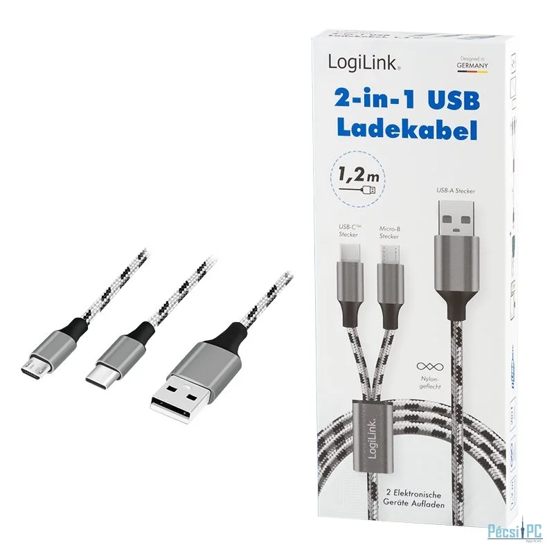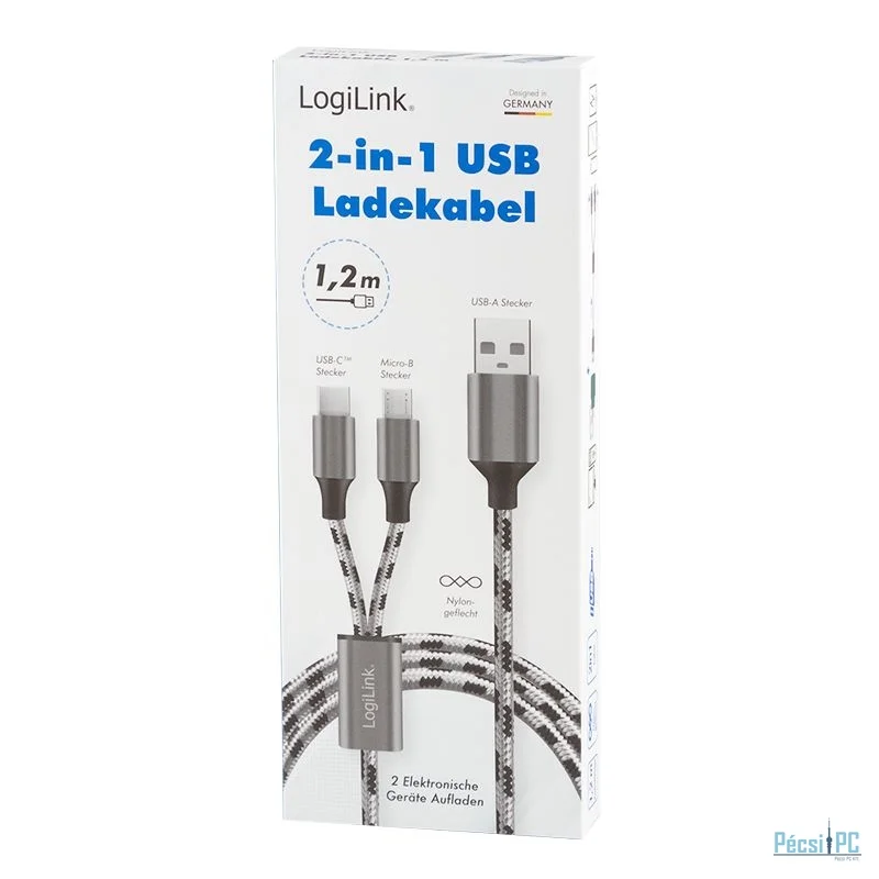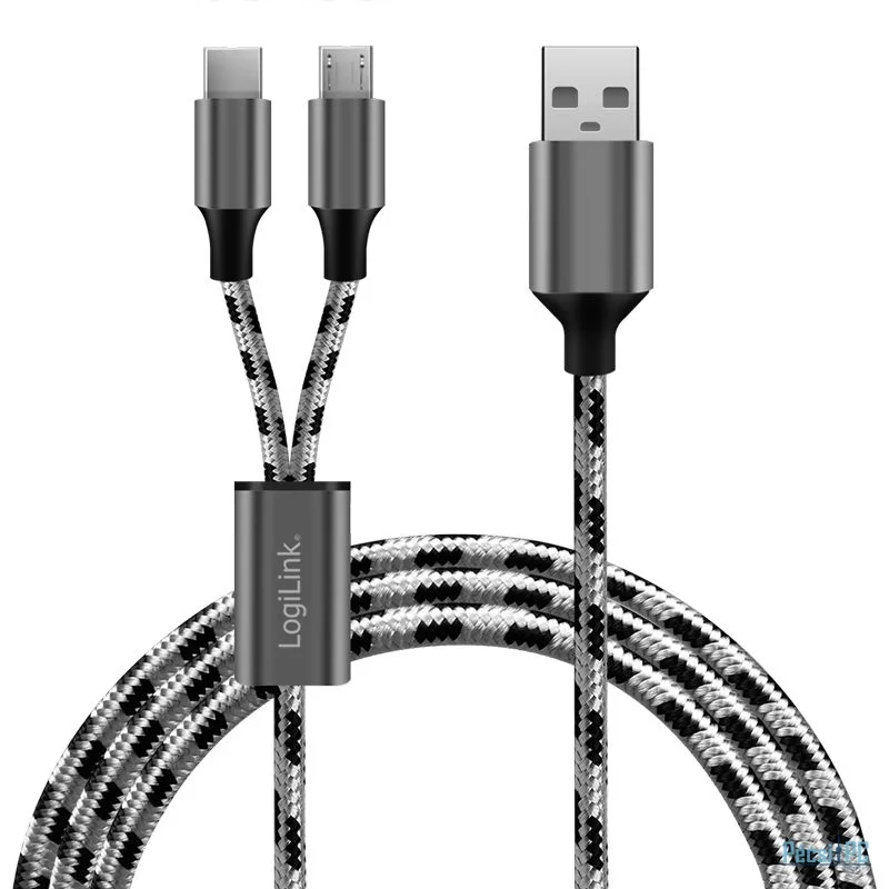 Logilink USB 2.0 USB-A/M to Micro-USB + USB-C cable 1,2m White/Black
