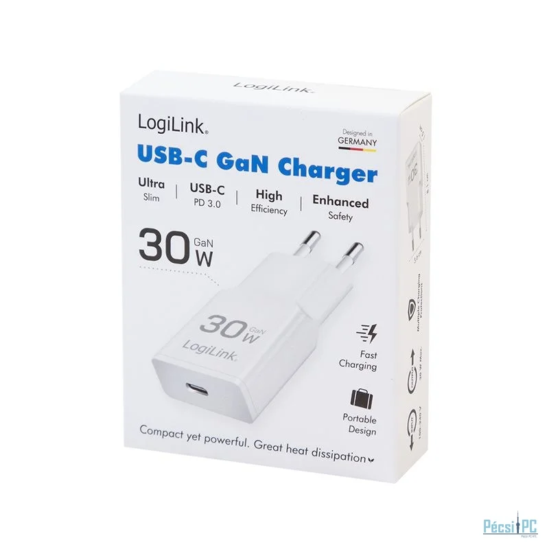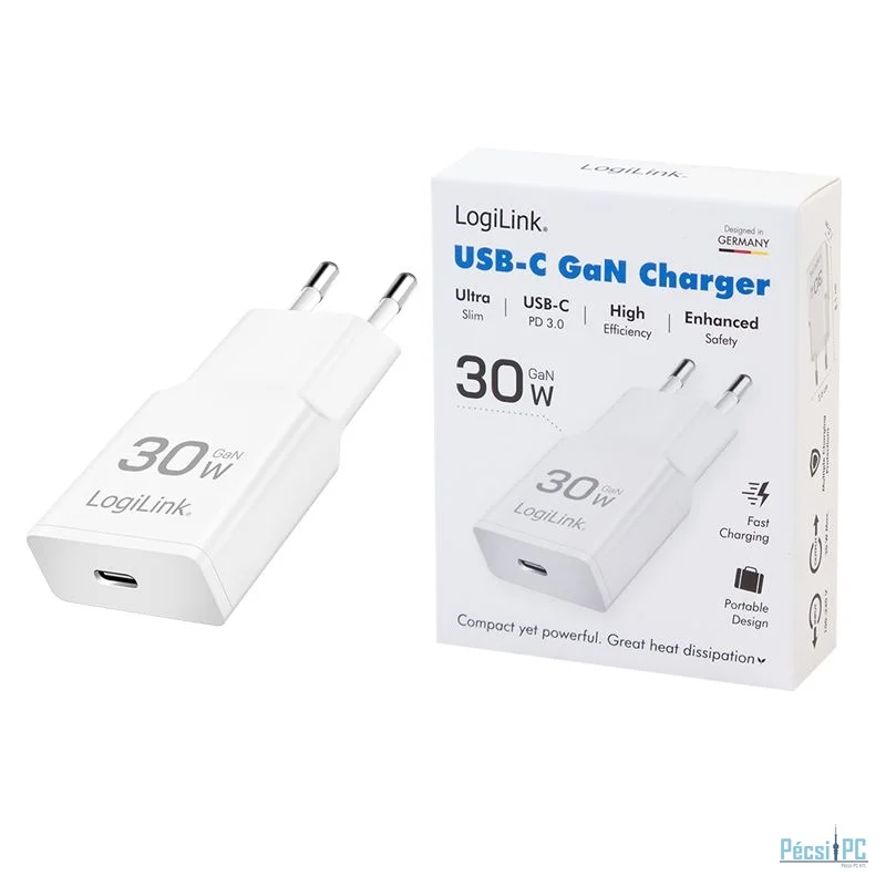 Logilink USB-C socket adapter GaN 1x USB-C (PD) 30W White