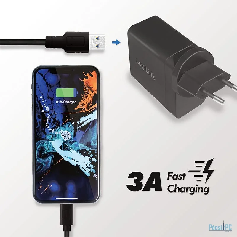 Logilink USB socket travel adapter for QC 3 18W Black