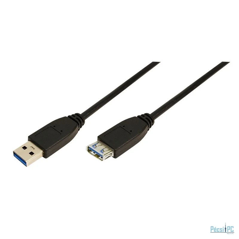 USB kábel, USB-A, USB-A, USB3.0, Male/Female, 3m, Black, Adatkábel