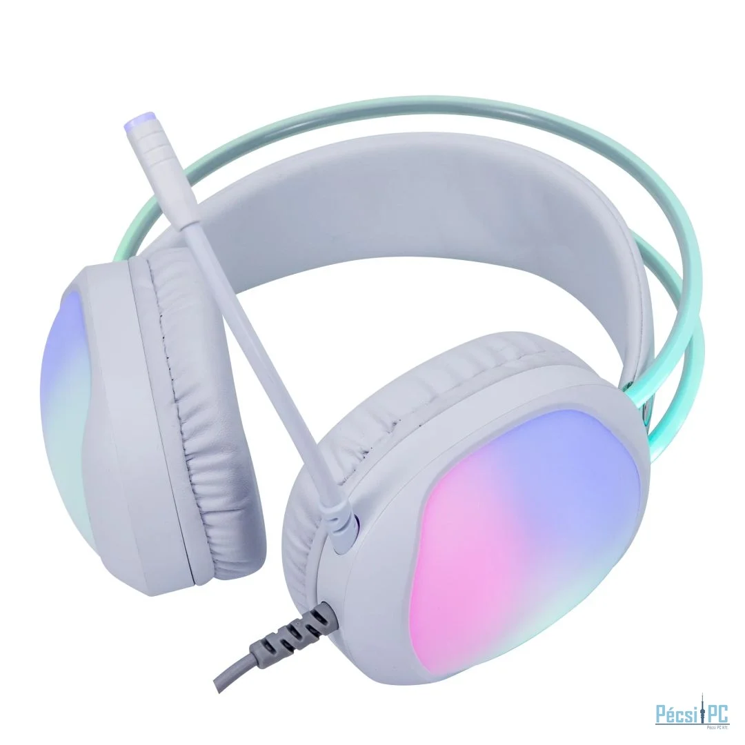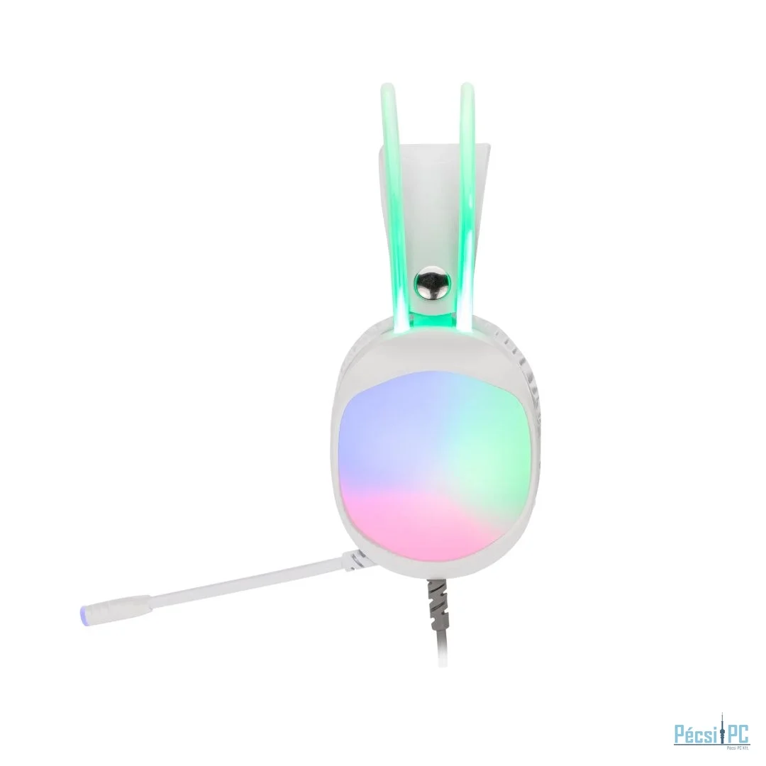 Headset, 2.0, USB, Kábel:2,05m, 16Ohm, 20Hz-20kHz, Mikrofon, White, RGB, Gamer