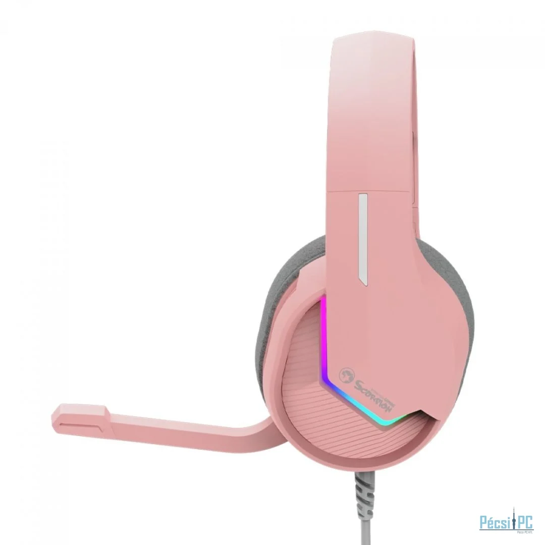 Headset, 2.0, USB, Kábel:2,05m, 32Ohm, 20Hz-20kHz, Mikrofon, Pink, RGB, Gamer