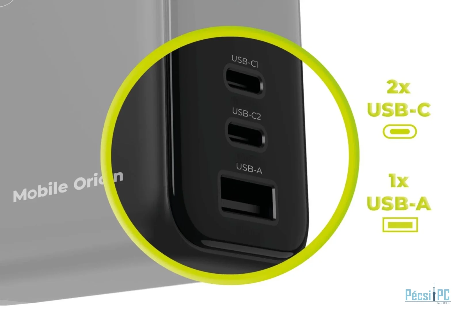Mobile Origin 140W GaN Display Charger PW21 2x USB-C+USB-A Black
