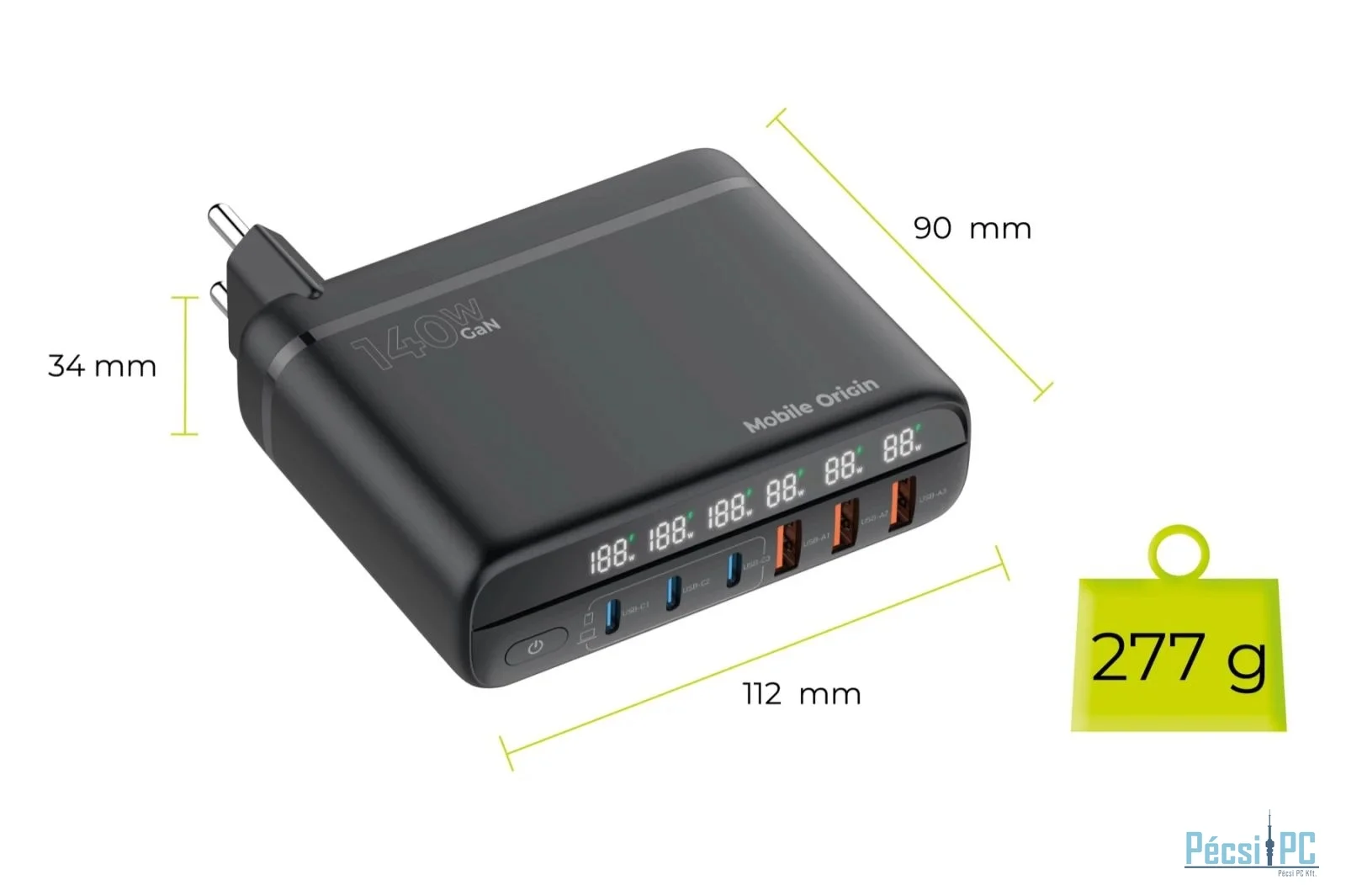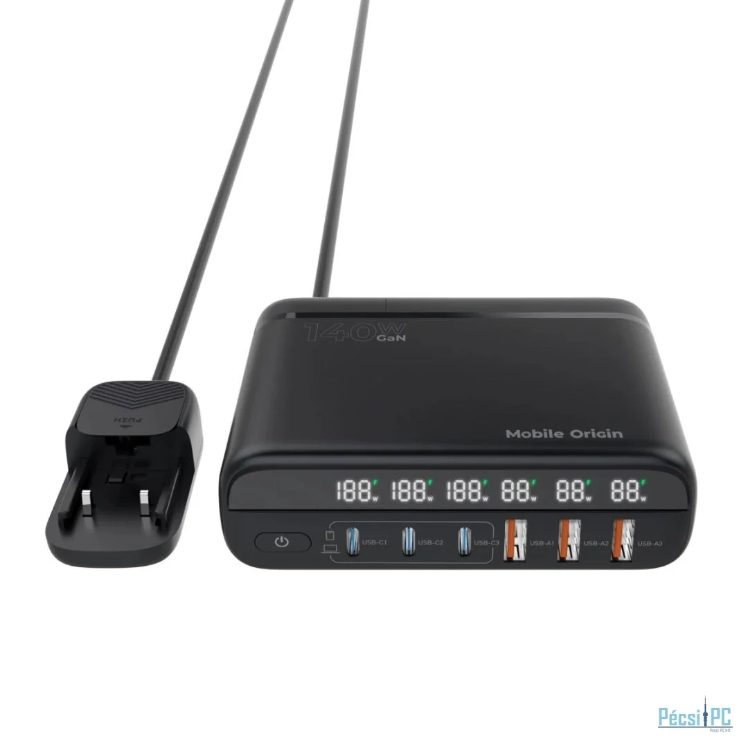 Mobile Origin 140W Travel Charger Hub EU/UK/US 3x USB-C+3x USB-A Black