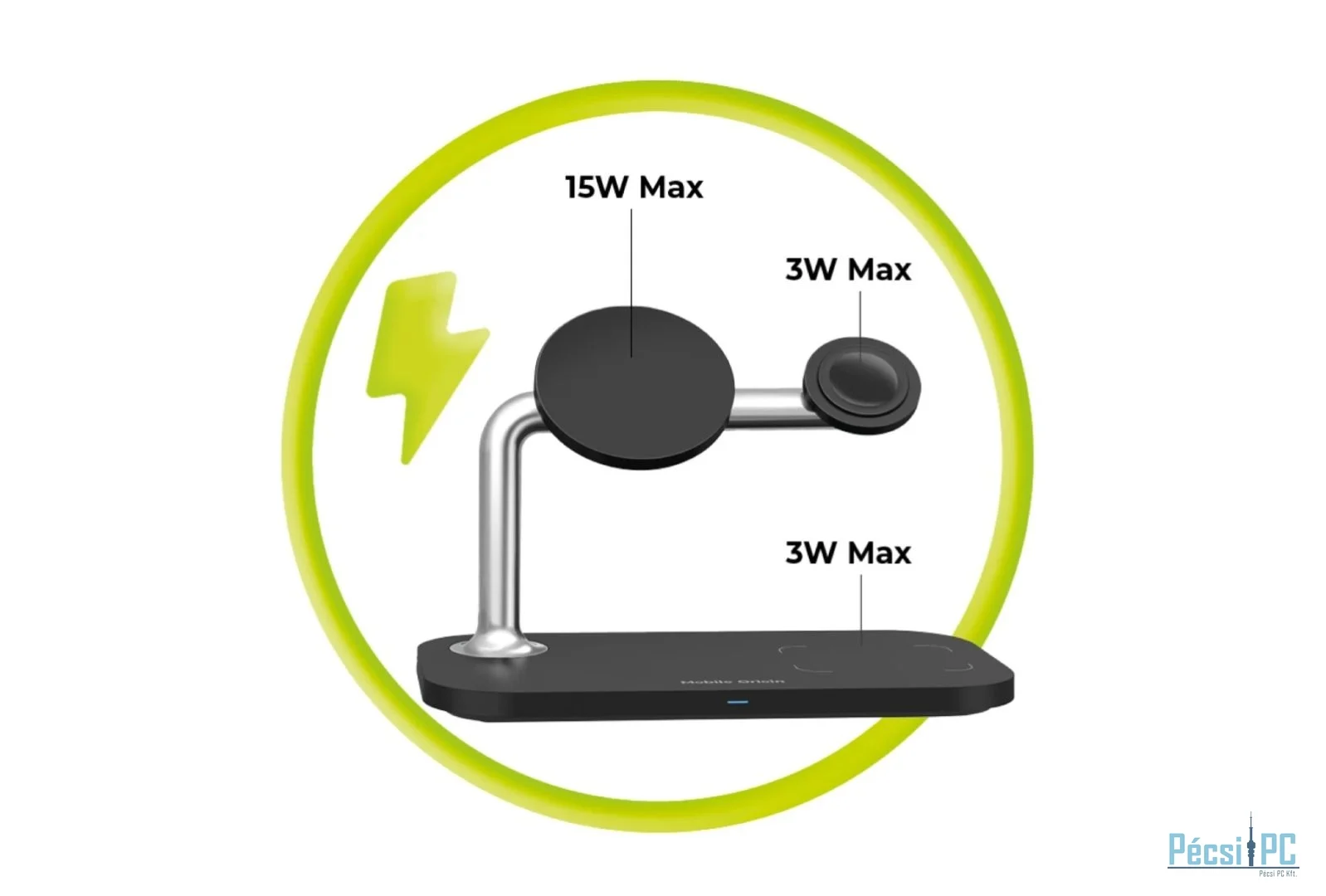 Felszerelve 15W-os telefontöltéssel, óra és fülhallgató 3W-os töltési technológiával. Ez a sokoldalú töltő biztosítja, hogy eszközei gyorsan és hatékonyan töltsék fel a készülékeket.