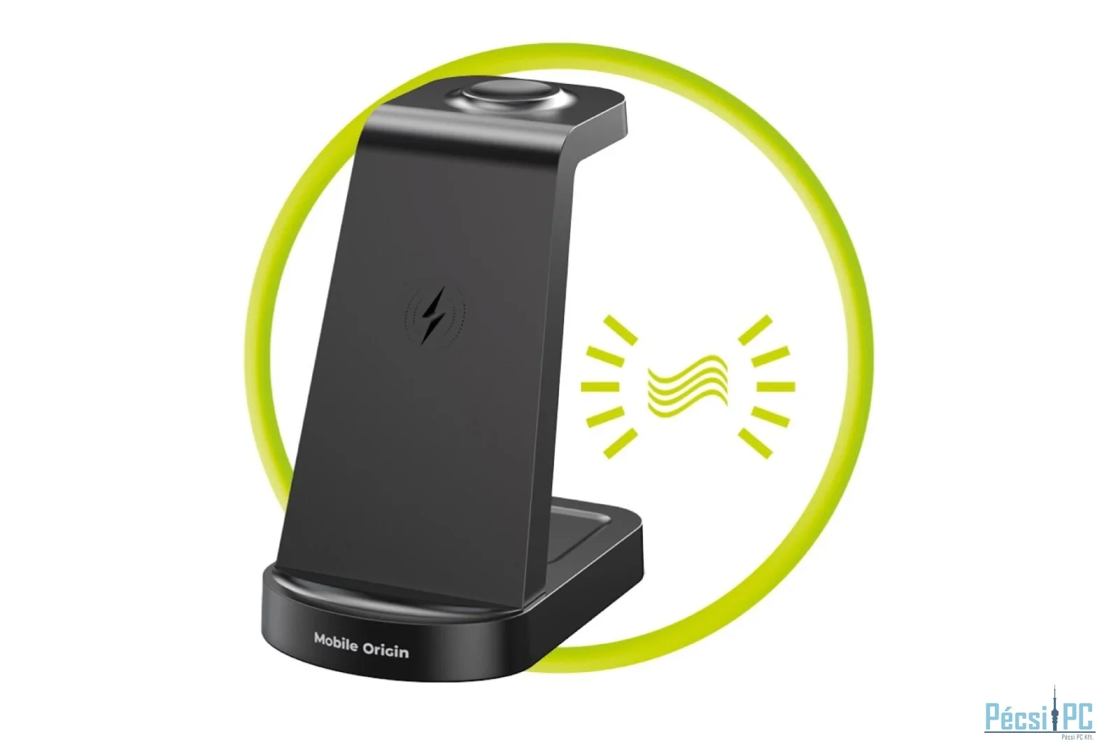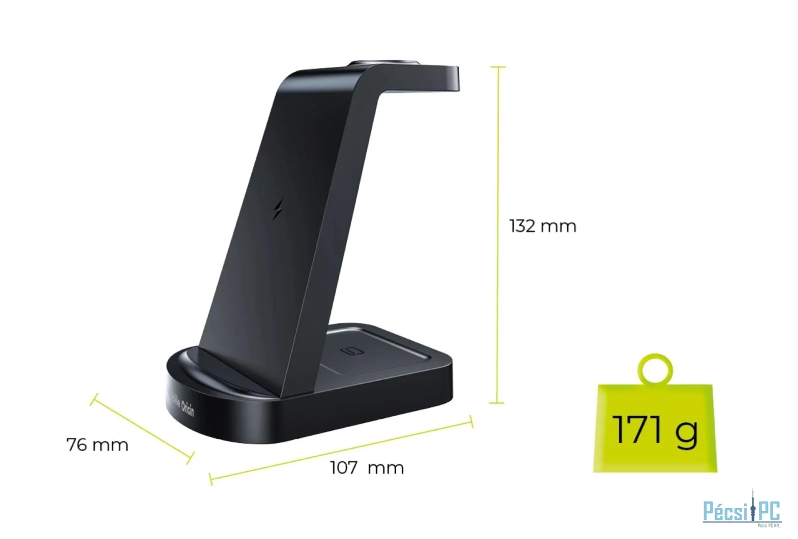 A Qi vezeték nélküli töltőpad akár 15W-os gyors töltést biztosít eszközeid számára, kiegészítve egy 5W-os töltőpaddal a fejhallgatókhoz (pl. AirPods) és egy 3W-os töltővel az okosórákhoz.