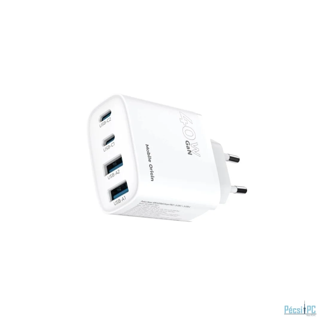40 W-os gyorstöltés a legújabb GaN technológiával, elegáns, kompakt kivitelben. Egyszerre akár 4 eszközt is tölthetsz a 2x USB-C és 2x USB-A portokkal. Ideális otthoni vagy utazáshoz, gyorsaságot, biztonságot és hordozhatóságot biztosít, bárhová is megy.
