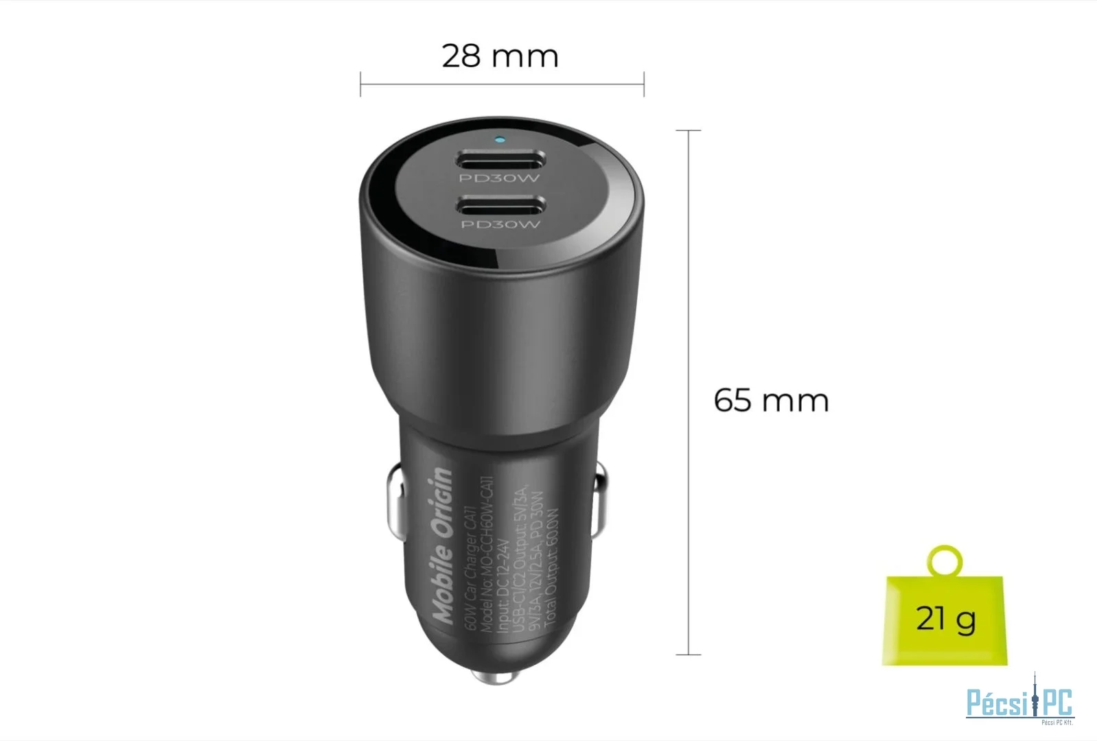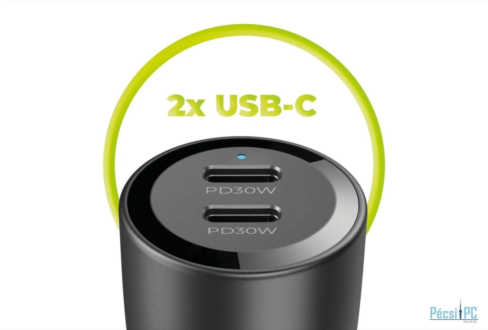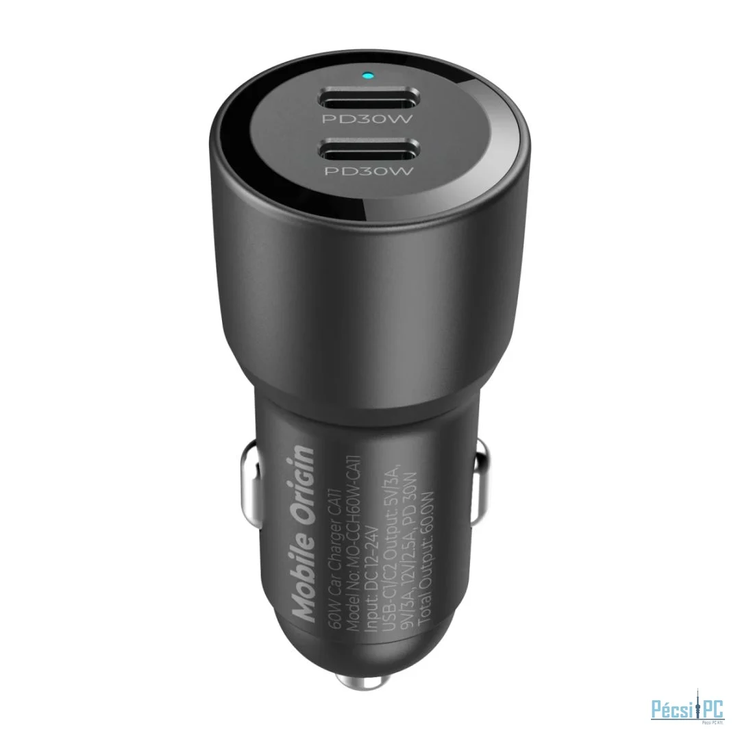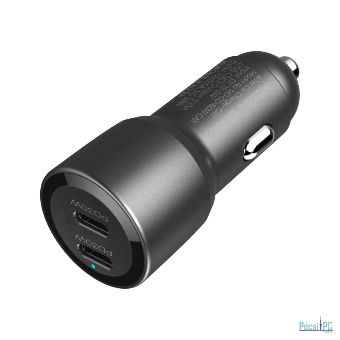 A 60 W-os CA11 autós töltőt úgy tervezték, hogy a helykihasználást maximalizáló kompakt méretének köszönhetően bármilyen autóban könnyen tárolható és kényelmesen használható legyen. Két USB-C porttal rendelkezik, így zökkenőmentesen illeszkedik a szivargyújtó csatlakozójába anélkül, hogy akadályozná a helyet
