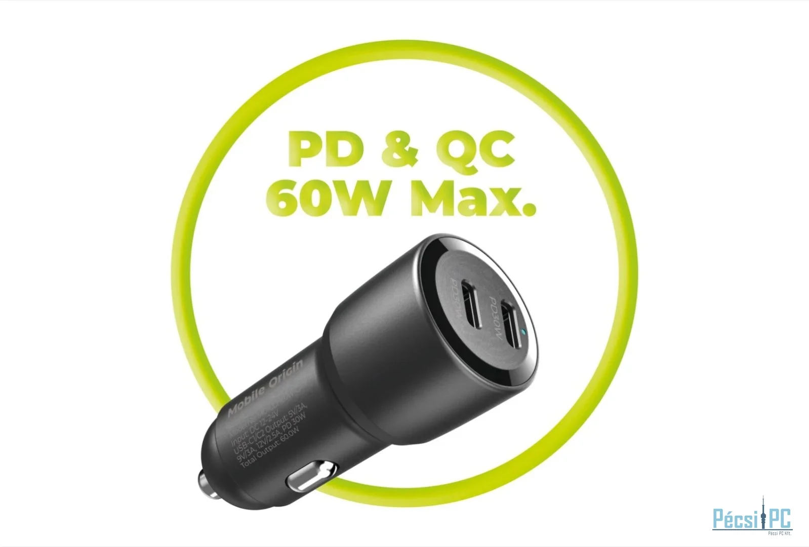 60W-os gyorstöltés - Ideális eszközök, például mobiltelefonok és táblagépek hatékony áramellátásához, maximális 60W-os teljesítményével (30W portonként). Támogatja a fejlett PD3.0 és QC protokollokat. Kompatibilis a 12V-24V-os járművekkel, és védelmet nyújt a túlmelegedés és a rövidzárlat ellen.