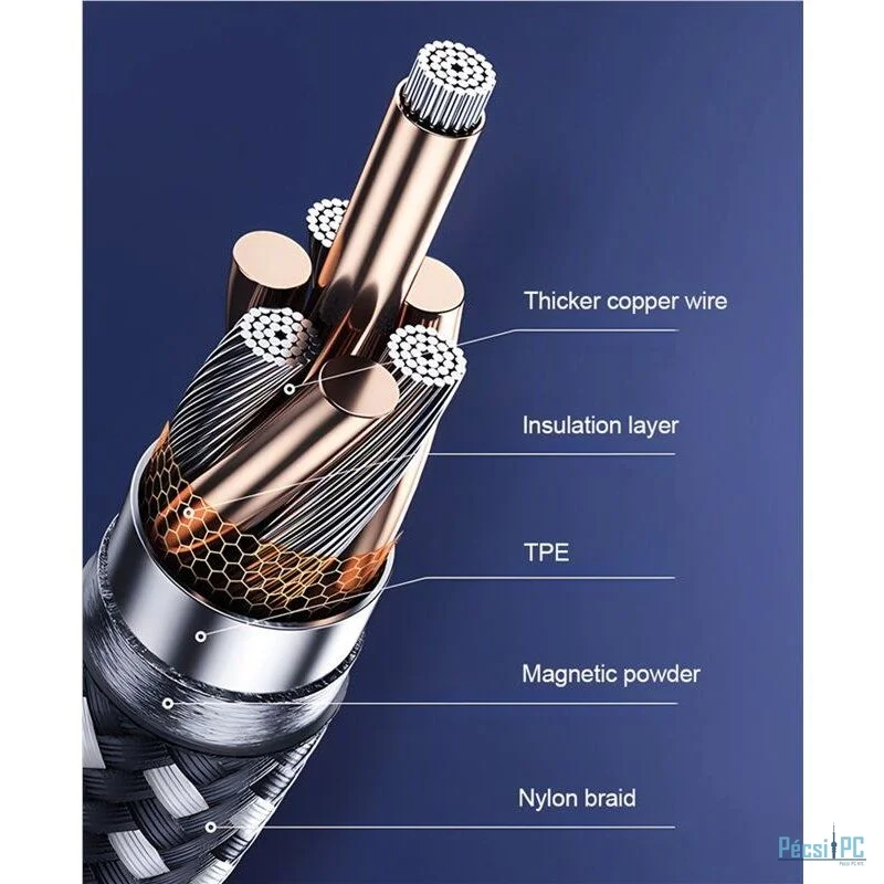 USB kábel, USB-C, USB-C, USB2.0, Male/Male, 1m, Black, Töltő és adatkábel, Szövetborítás