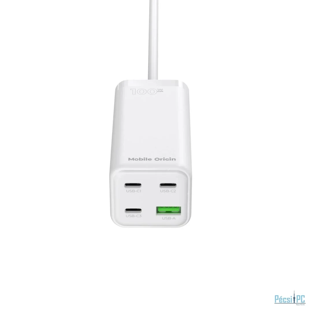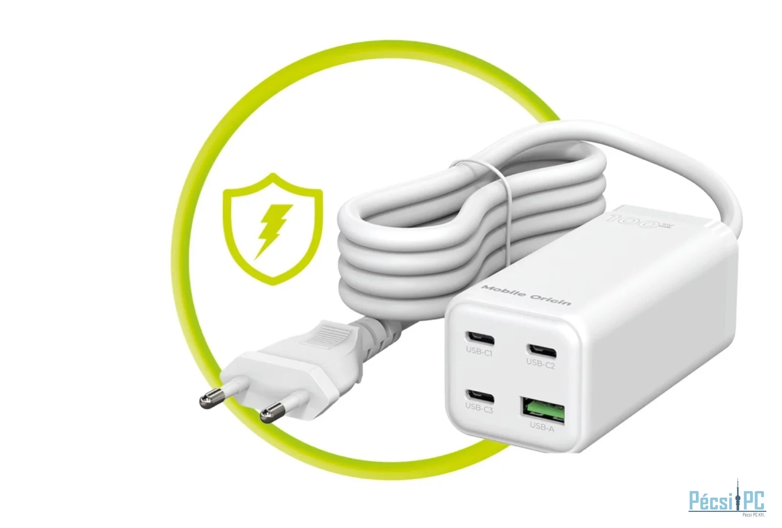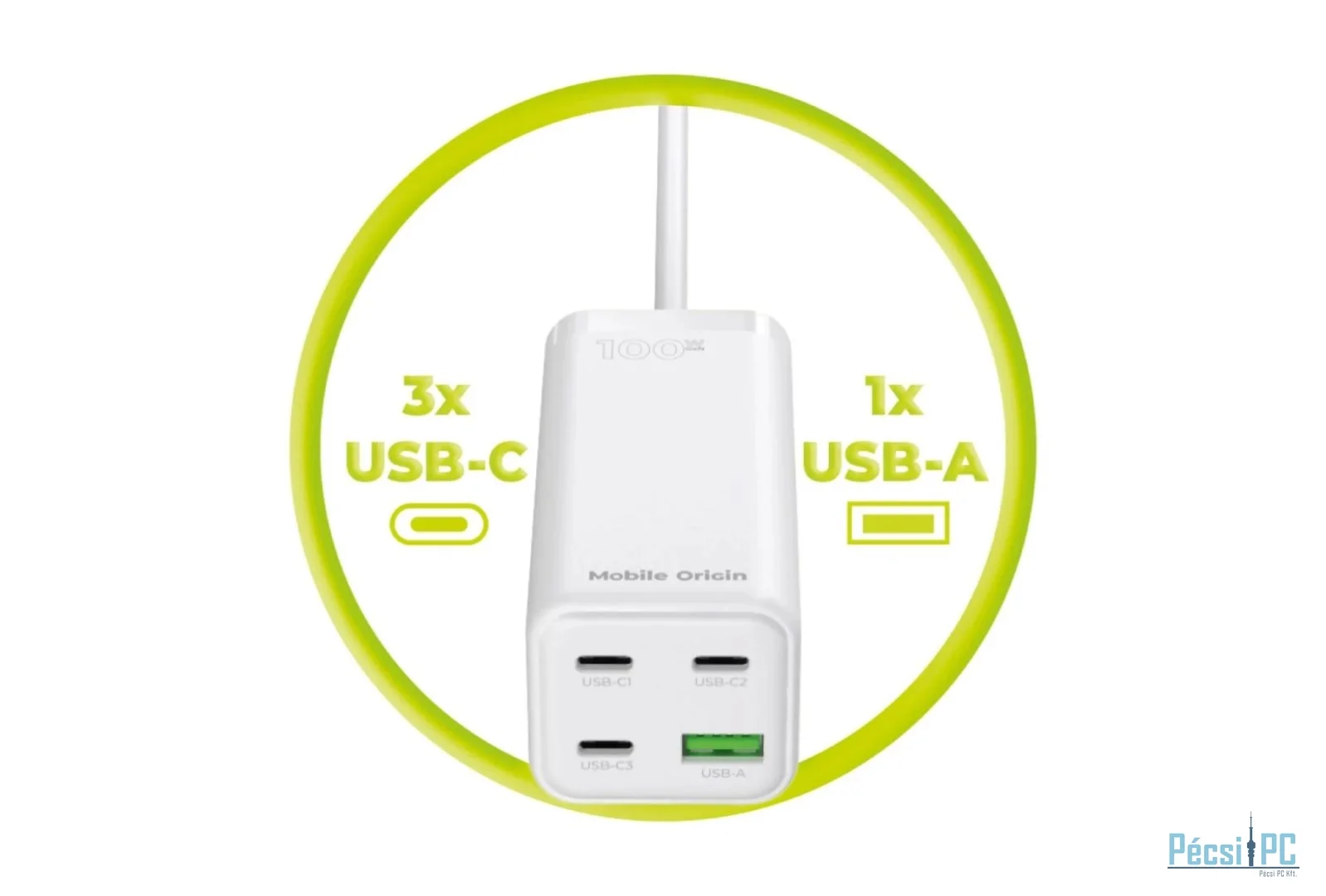 Fedezze fel a kompakt teljesítmény erejét a Mobile Origin GaN 100W-os kompakt multihubos PW18 töltővel - a végső megoldás minden okoseszközéhez! Ez a fejlett GaN technológiával ellátott, kifinomult töltő akár 100 W teljesítményt is biztosít, így egyszerre megbízhatóan és gyorsan tölti laptopját, táblagépét, okostelefonját és fülhallgatóit. Négy portjával (3× USB-C + USB-A) rugalmas csatlakoztathatóságot kínál, kompakt mérete és könnyű, tűzálló szerkezete pedig biztonságot és kényelmet nyújt otthon vagy útközben.