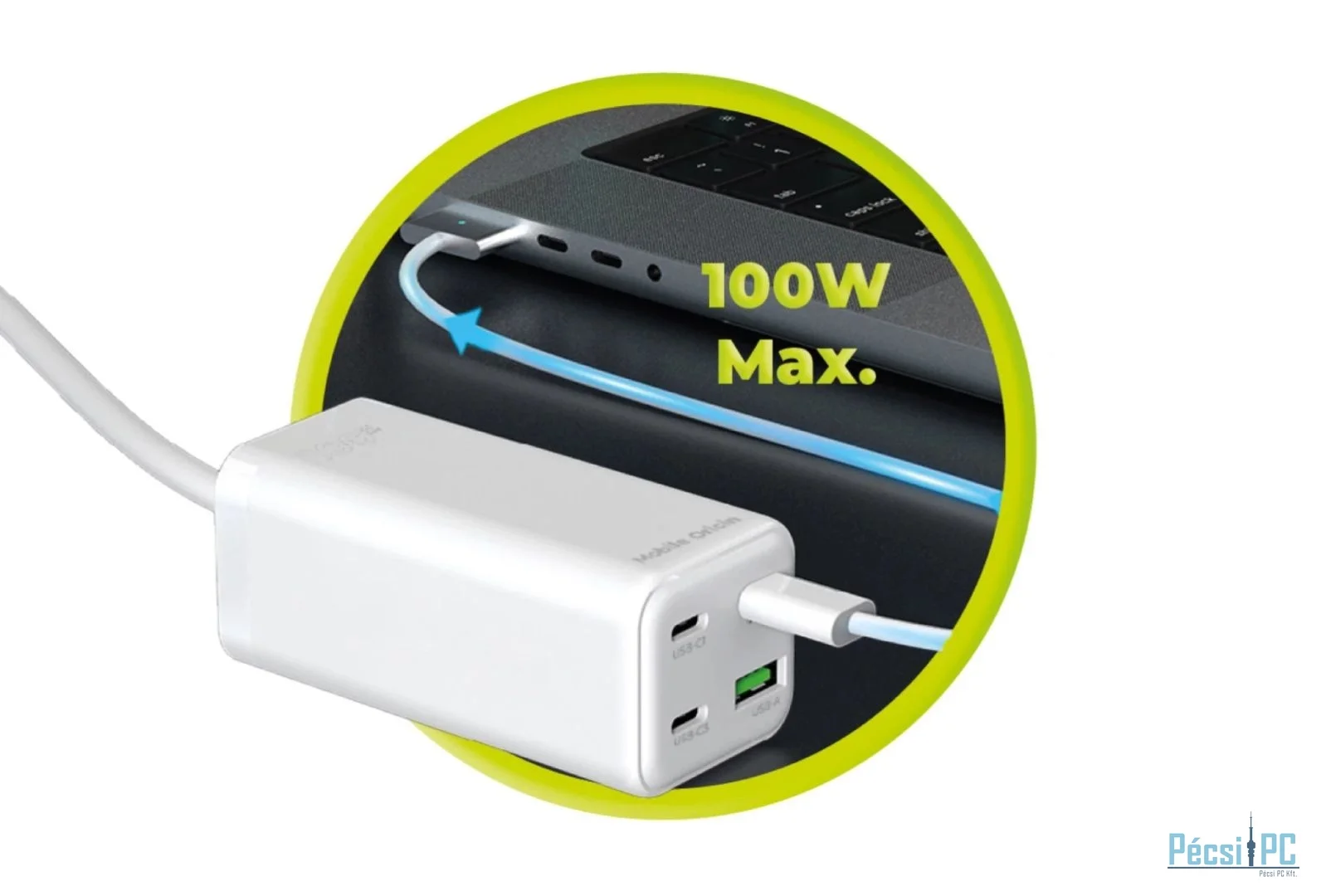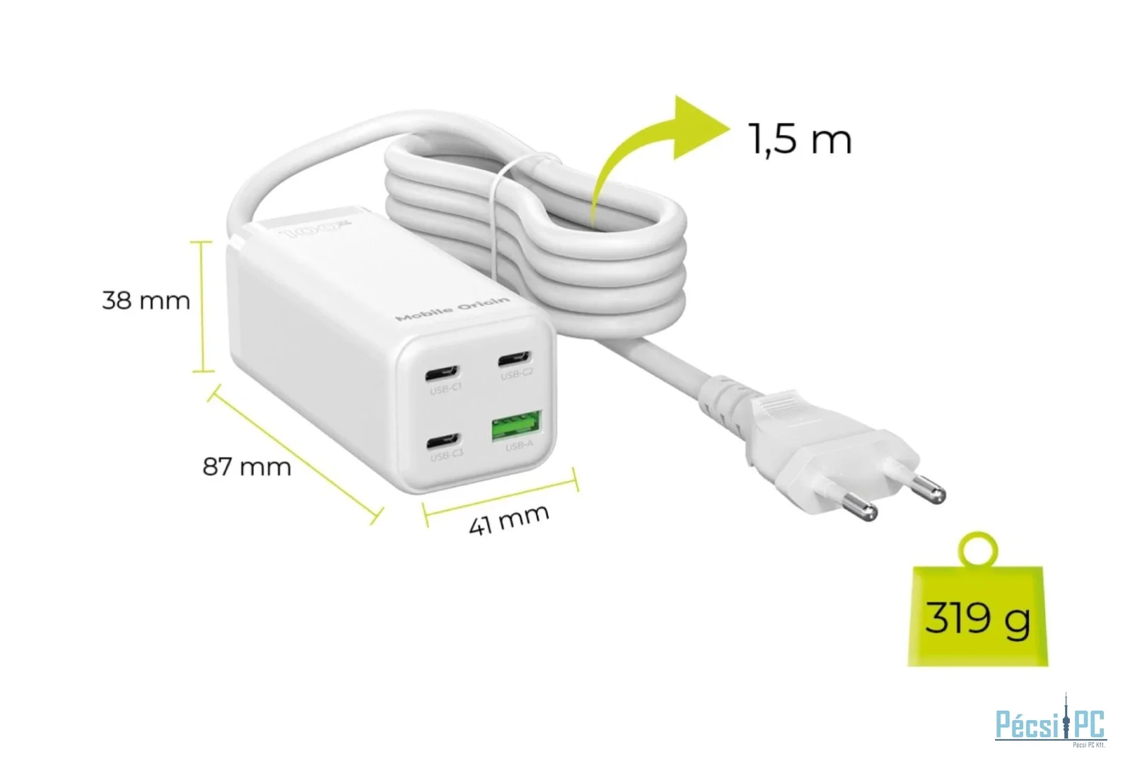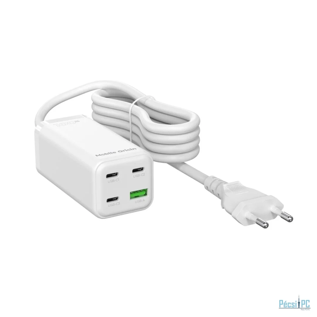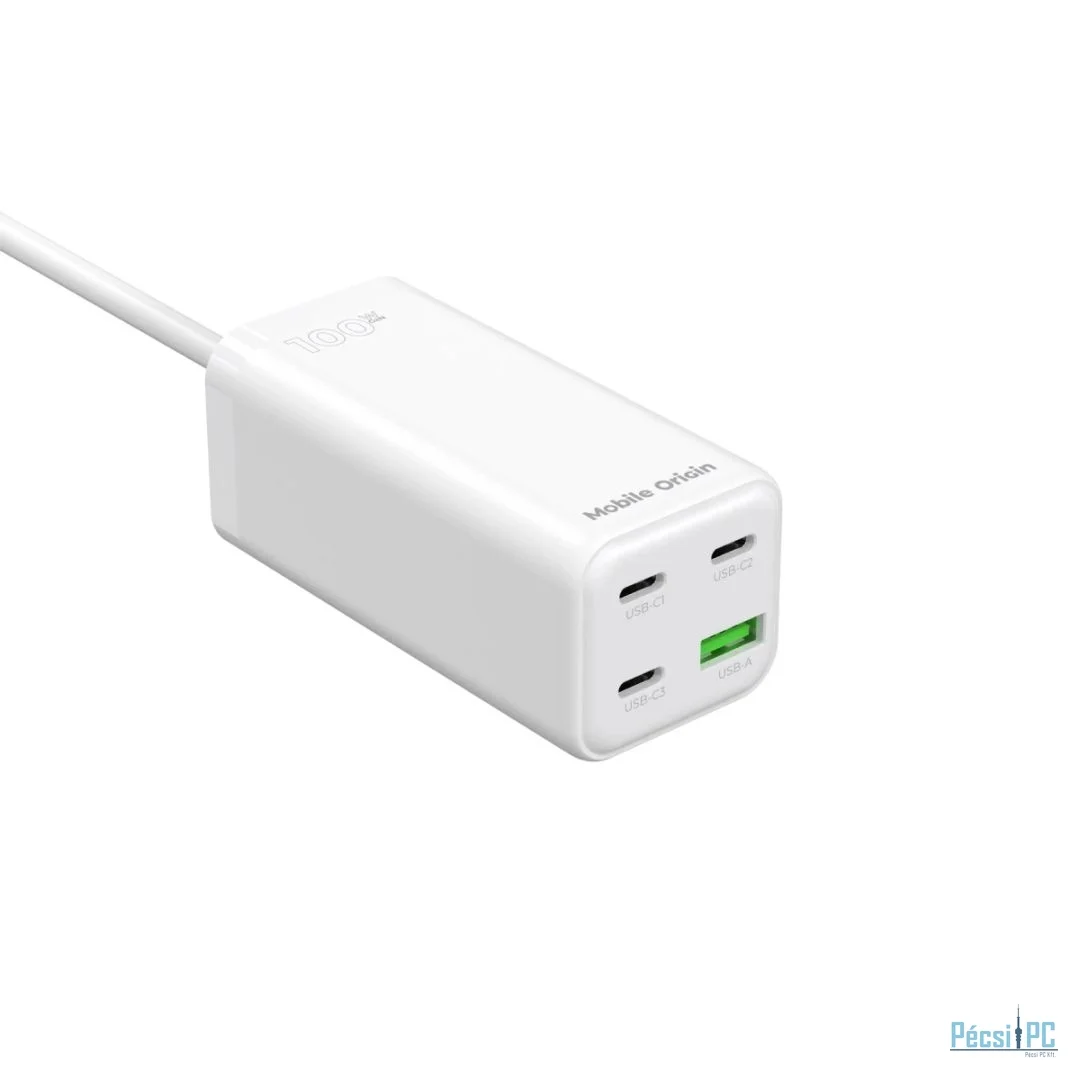 Fedezze fel a kompakt teljesítmény erejét a Mobile Origin GaN 100W-os kompakt multihubos PW18 töltővel - a végső megoldás minden okoseszközéhez! Ez a fejlett GaN technológiával ellátott, kifinomult töltő akár 100 W teljesítményt is biztosít, így egyszerre megbízhatóan és gyorsan tölti laptopját, táblagépét, okostelefonját és fülhallgatóit. Négy portjával (3× USB-C + USB-A) rugalmas csatlakoztathatóságot kínál, kompakt mérete és könnyű, tűzálló szerkezete pedig biztonságot és kényelmet nyújt otthon vagy útközben.