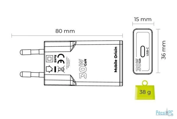 A GaN 30W-os Slim Charger MO17 USB-C adapter a fejlett GaN technológiának és a Power Delivery támogatásnak köszönhetően gyors és hatékony töltést biztosít. Kompakt méreteivel (80 × 36 × 15 mm) tökéletesen alkalmas utazáshoz és otthoni használatra egyaránt.