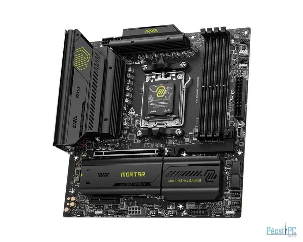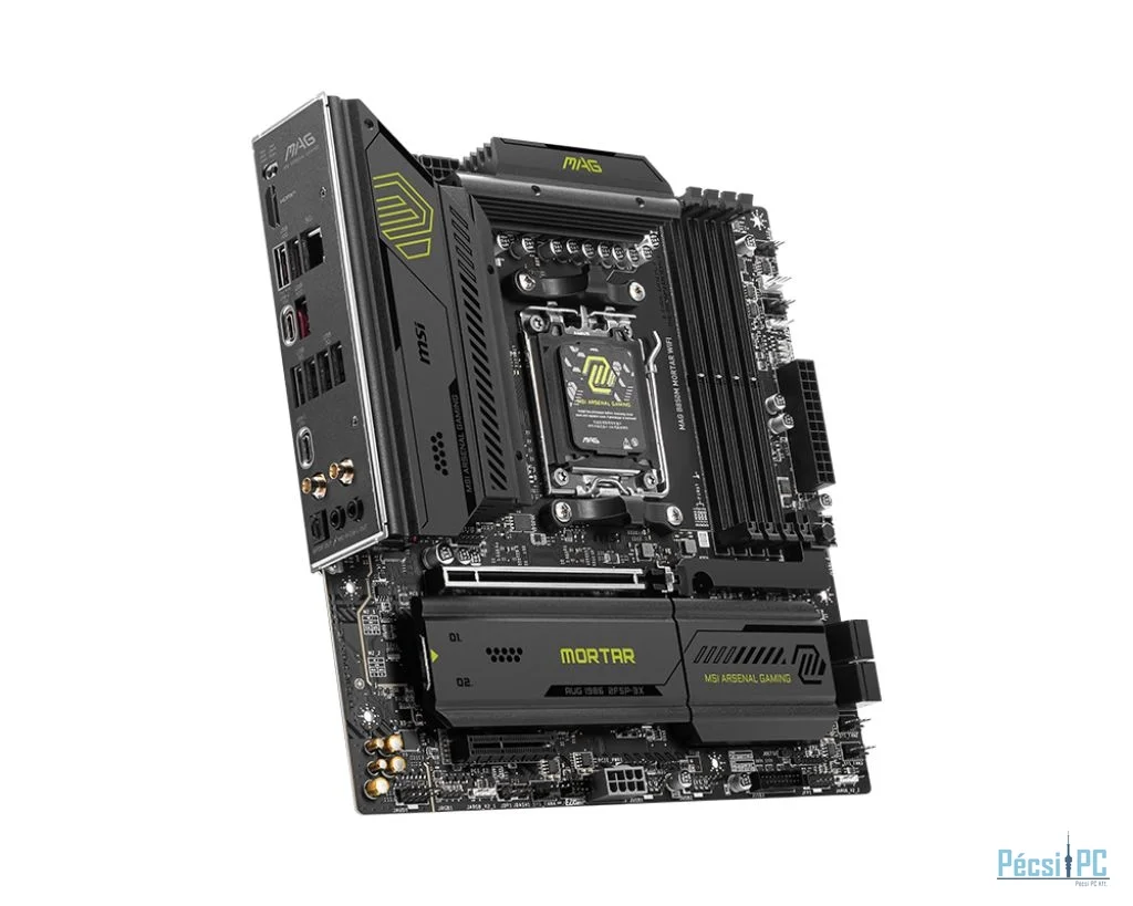AM5, AMD B850, 4xDDR5, Max:5600MHz, Max:256GB, 1xPCIE16, 1xPCIE4, 4xSATA3, RAID, 4xUSB3, 3xUSB3.1, 1xUSB3.1C, 1xUSB3.2C, DisplayPort, 7.1, SPDIF optikai kimenet, 5Gb/s LAN, WiFi, Bluetooth, 3xM.2, Micro-ATX
