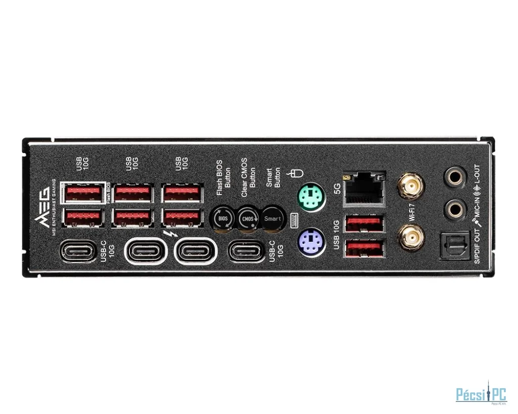 LGA1851, Intel Z890, 2xDDR5, Max:6400MHz, Max:128GB, 3xPCIE16, 1xPCIE1, 4xSATA3, RAID, 8xUSB3.2, 4xUSB3.2C, HDMI, DisplayPort, PS2:2 db, 7.1, SPDIF optikai kimenet, 5Gb/s LAN, WiFi, Bluetooth, 6xM.2, ATX, Gamer