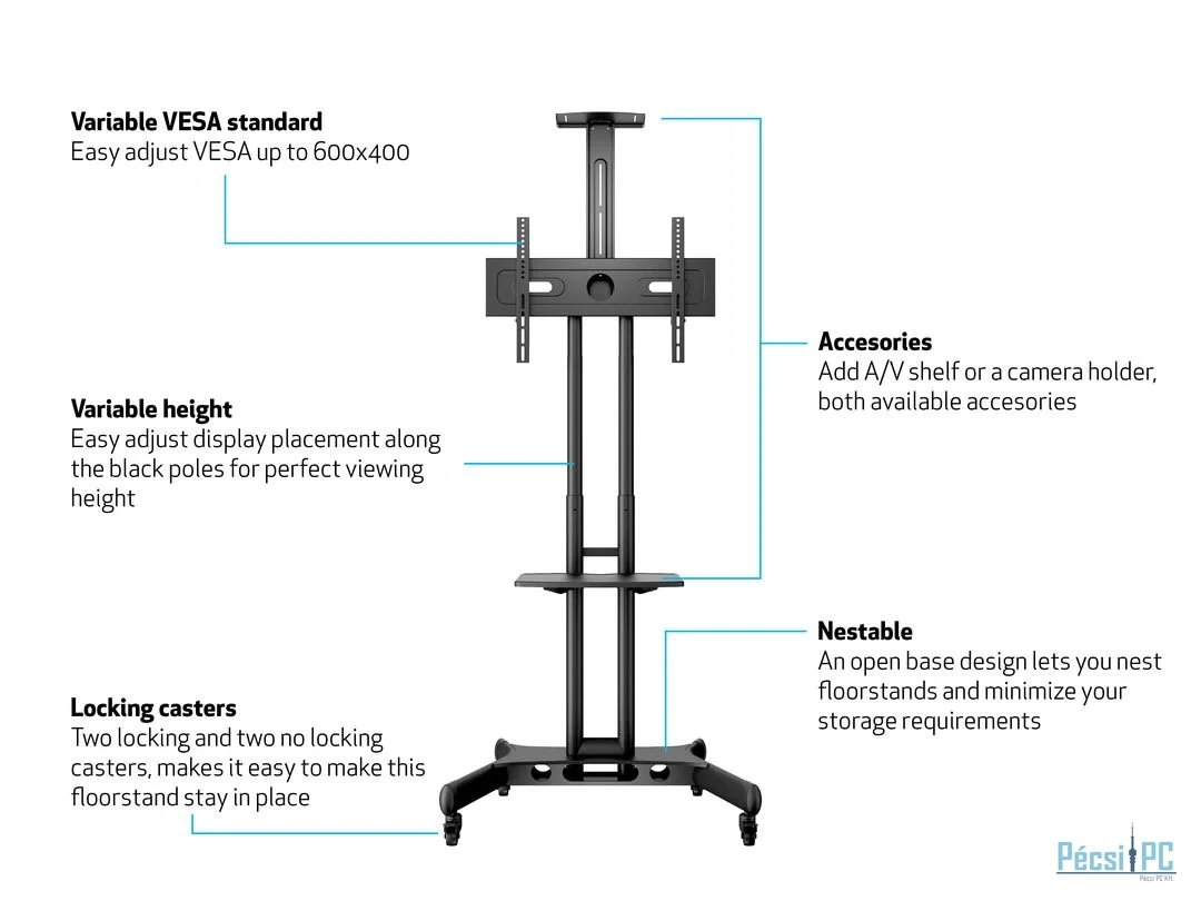 Multibrackets M Public Floorstand Basic 150 incl shelf & camera holder 32" - 60" Black