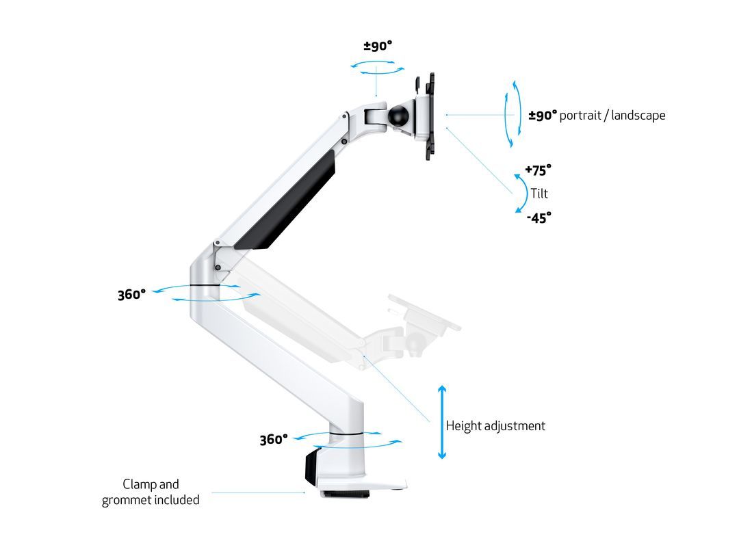 Multibrackets M VESA Gas Lift Arm Single 15"-34" White