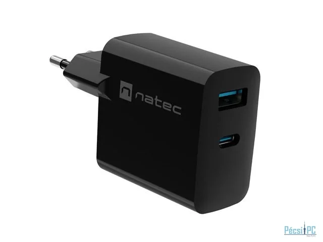Adapter, 1xUSB-A, 1xUSB-C, 5V/12V, 3A, 45W, PD, Black