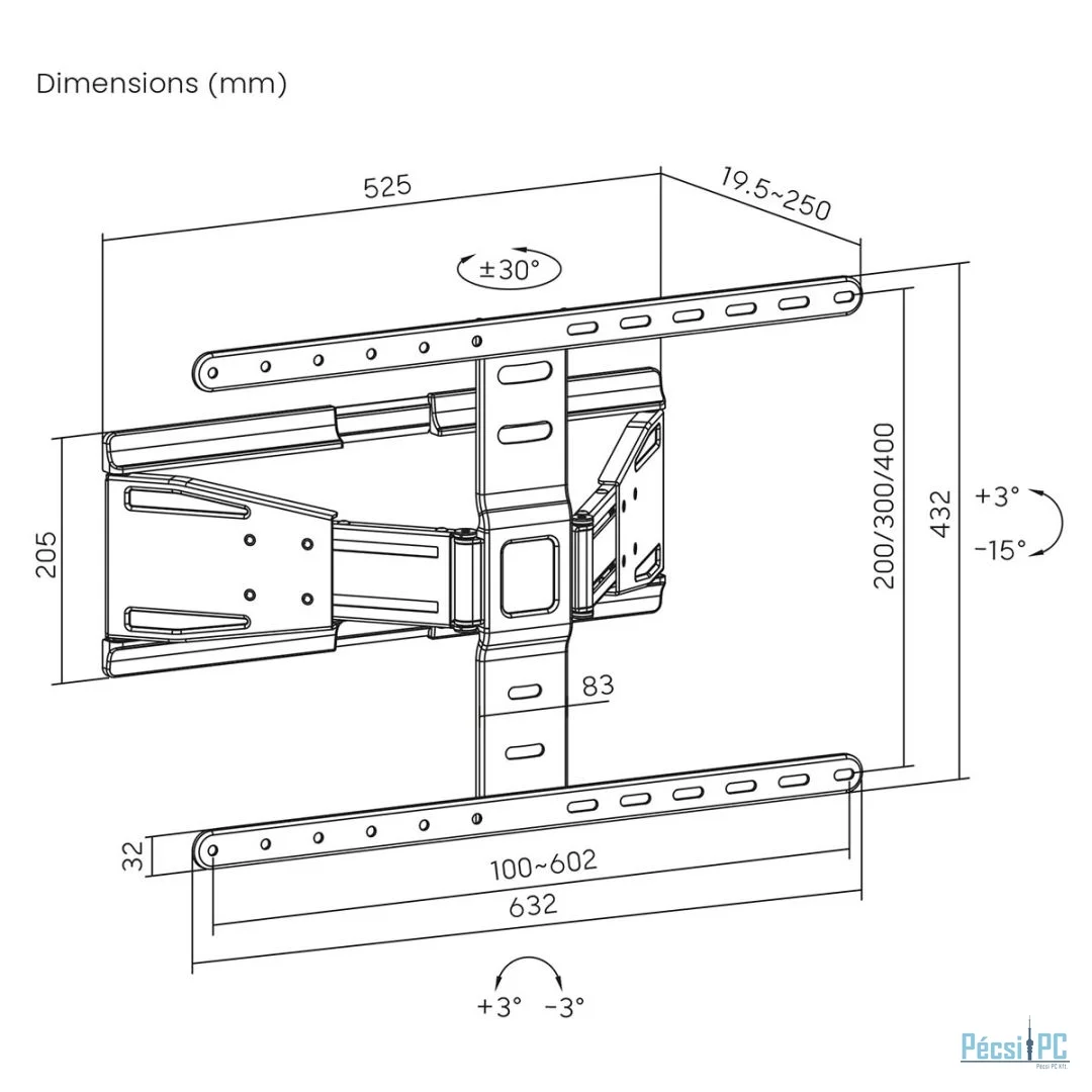Kijelző, Fali, Min 43", Max 90"