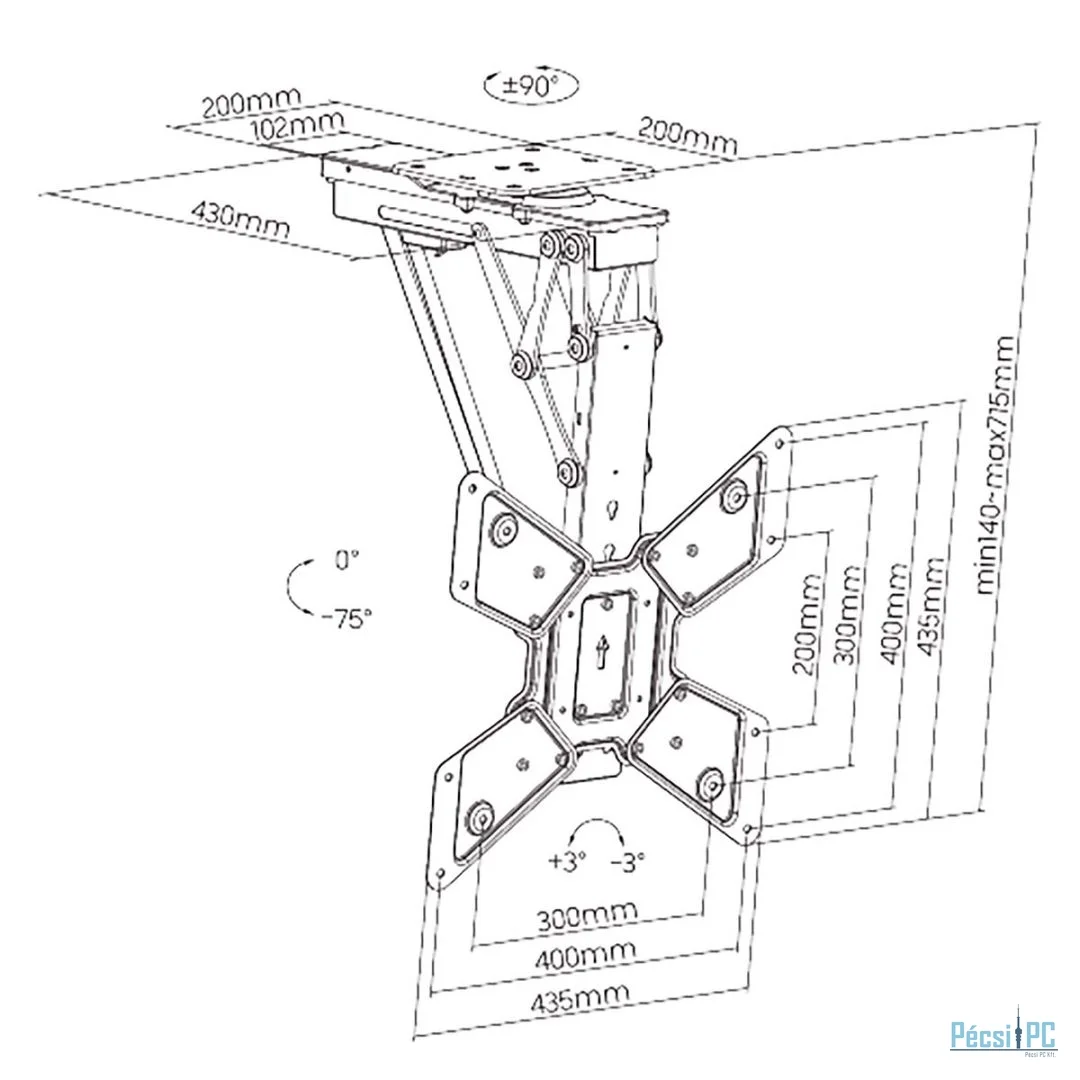 Kijelző, Plafon, Min 23", Max 65"