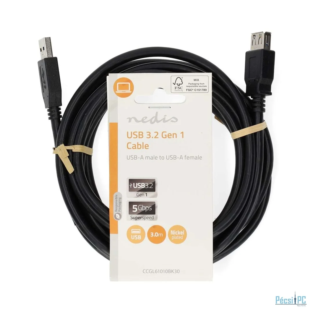 Nedis USB-A Male to USB-A Female cable 3m Black