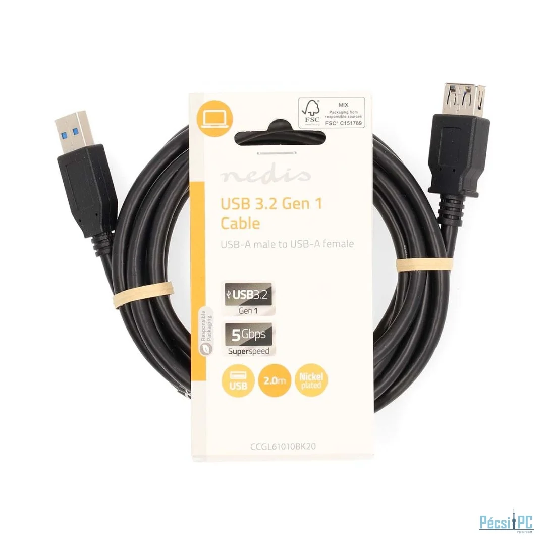 USB kábel, USB-C, USB-C, USB2.0, Male/Male, 2m, Black, Töltő és adatkábel