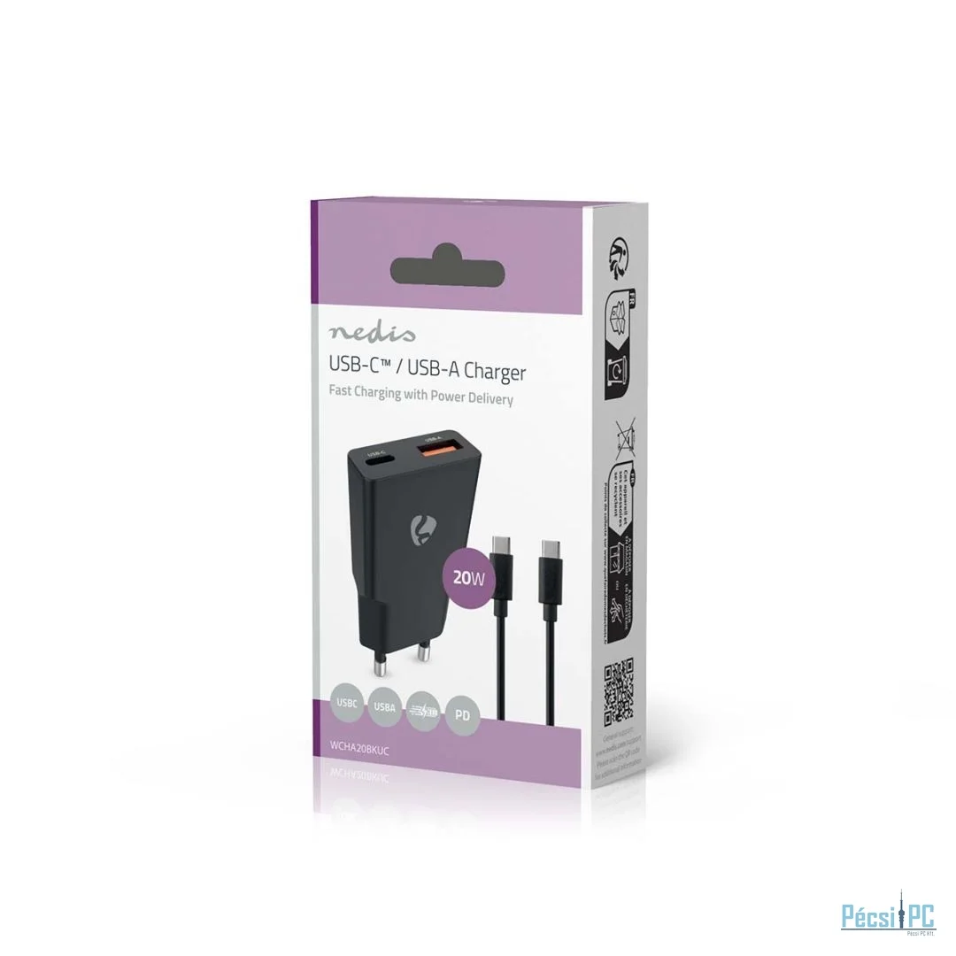 A kompakt és könnyű kialakításnak köszönhetően kiváló választás otthonra, irodába vagy utazáshoz. Helytakarékos formájának és nagy hatékonyságának köszönhetően a Nedis Compact Dual GaN fali töltő tökéletes társ mindazoknak, akik gyors, megbízható és kényelmes töltést keresnek. A csomagban található egy 1,5 méteres USB-C™-USB-C™ kábel, amely tökéletes az adatátvitelhez és az USB-C™-eszközök töltéséhez a dobozból kivéve.