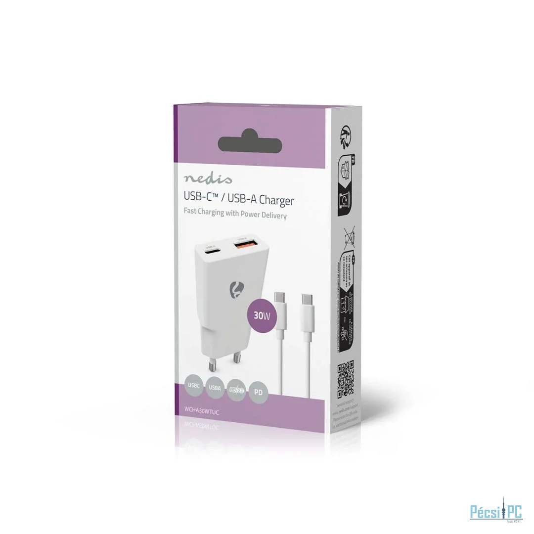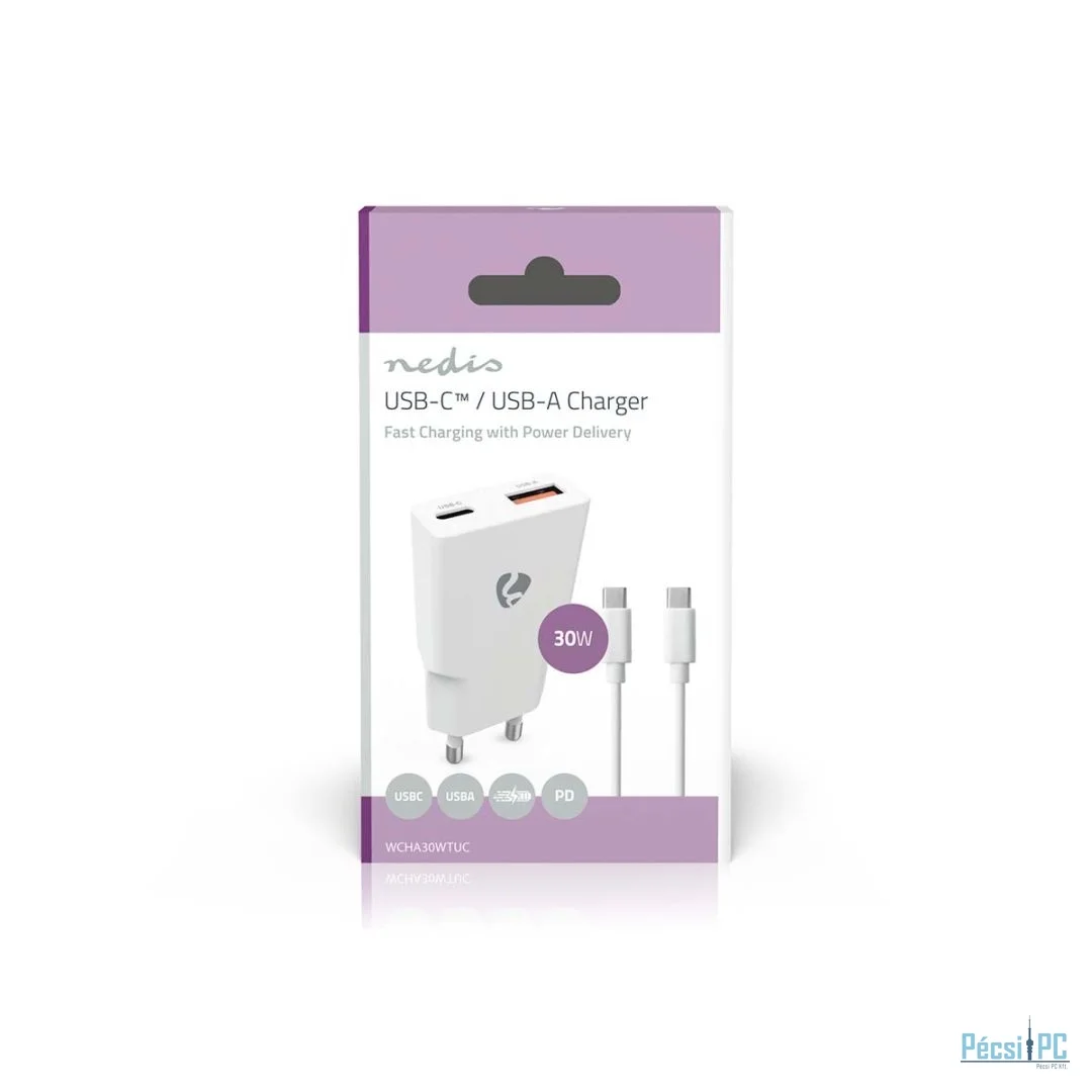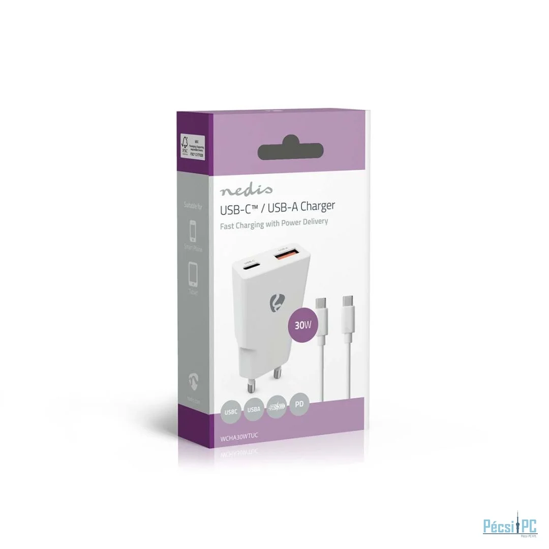 A kompakt és könnyű kialakításnak köszönhetően kiváló választás otthonra, irodába vagy utazáshoz. Helytakarékos formájának és nagy hatékonyságának köszönhetően a Nedis Compact Dual GaN fali töltő tökéletes társ mindazoknak, akik gyors, megbízható és kényelmes töltést keresnek. A csomagban található egy 1,5 méteres USB-C™-USB-C™ kábel, amely tökéletes az adatátvitelhez és az USB-C™-eszközök töltéséhez a dobozból kivéve.