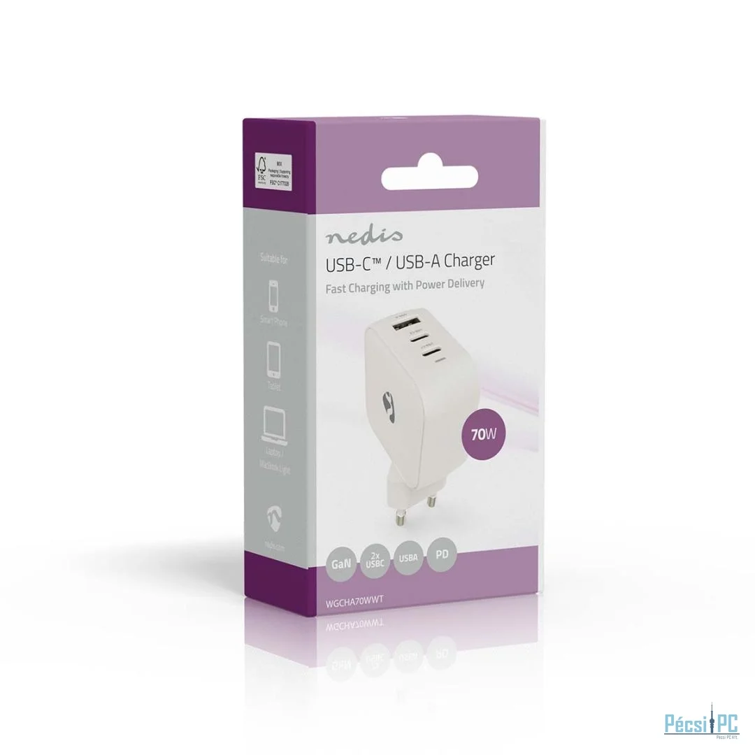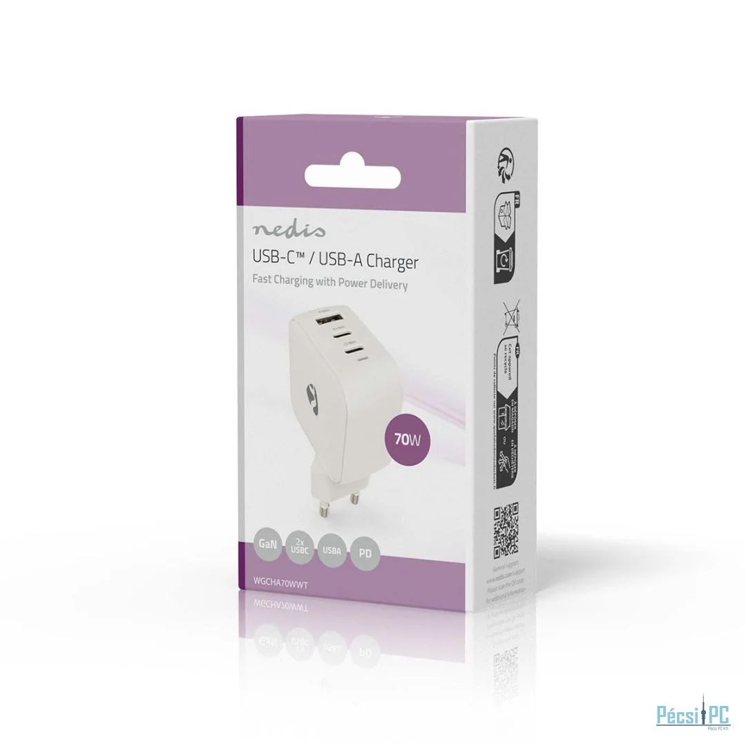 A két USB-C™ Power Delivery (PD) porttal és egy USB-A gyorstöltő porttal felszerelt, nagy teljesítményű töltővel akár három eszköz egyidejű töltését is lehetővé teszi. Legyen szó okostelefonról, táblagépről vagy laptopról, a Nedis Dual GaN Charger biztosítja, hogy eszközei mindig készenlétben legyenek, amikor szükség van rájuk. Egyenként használva az USB-C PD portok akár lenyűgöző 70 W teljesítmény leadására is képesek, így ideálisak a nagy teljesítményű töltéshez.