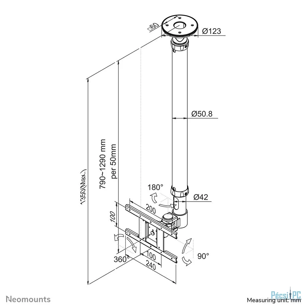 Neomounts FPMA-C100 TV/Monitor Ceiling Mount for 10"-30" Black