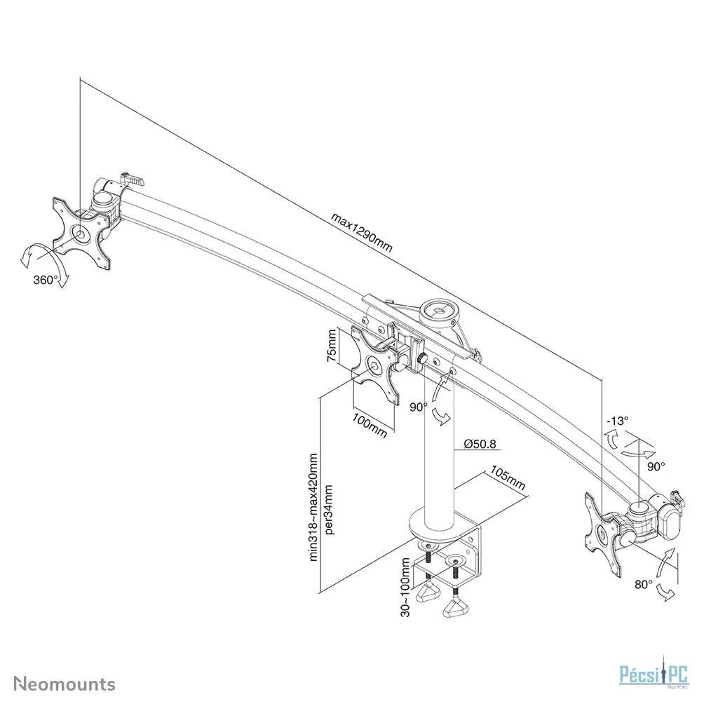 Neomounts FPMA-D700D3 Tilt/Turn/Rotate Triple desk monitor arm 10"-27" Black