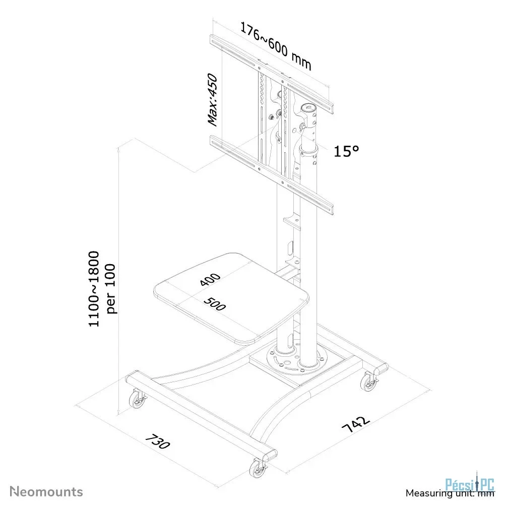 Neomounts PLASMA-M1800E Mobile Monitor/TV Floor Stand for 27"-70" Silver